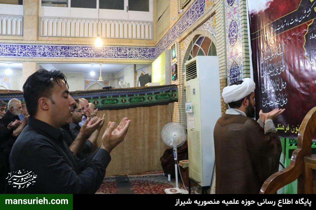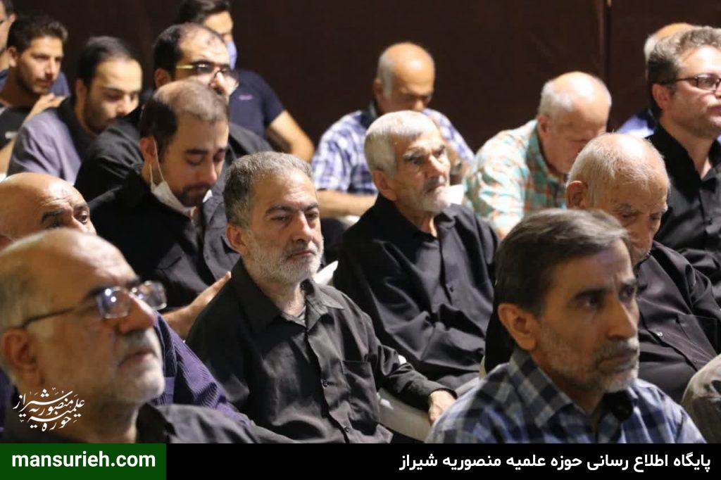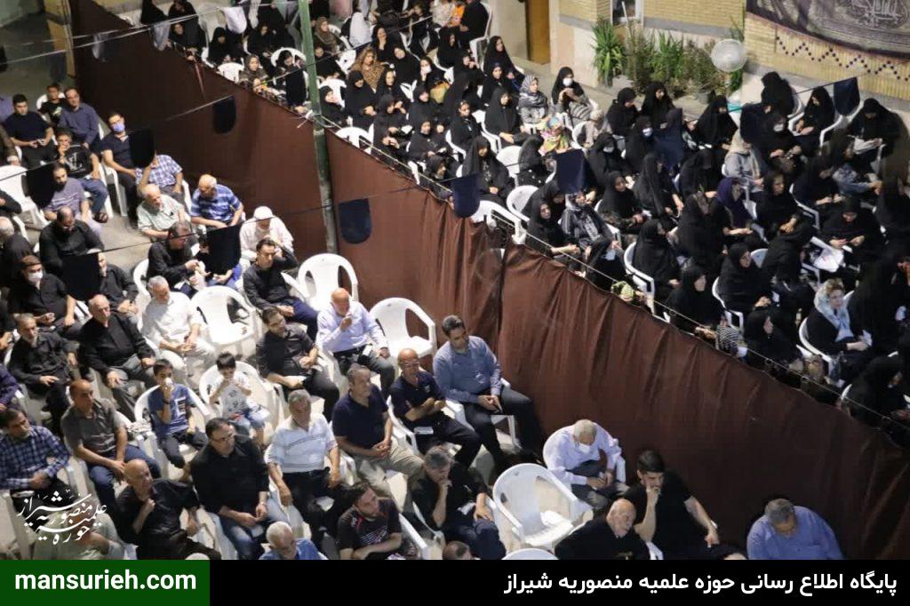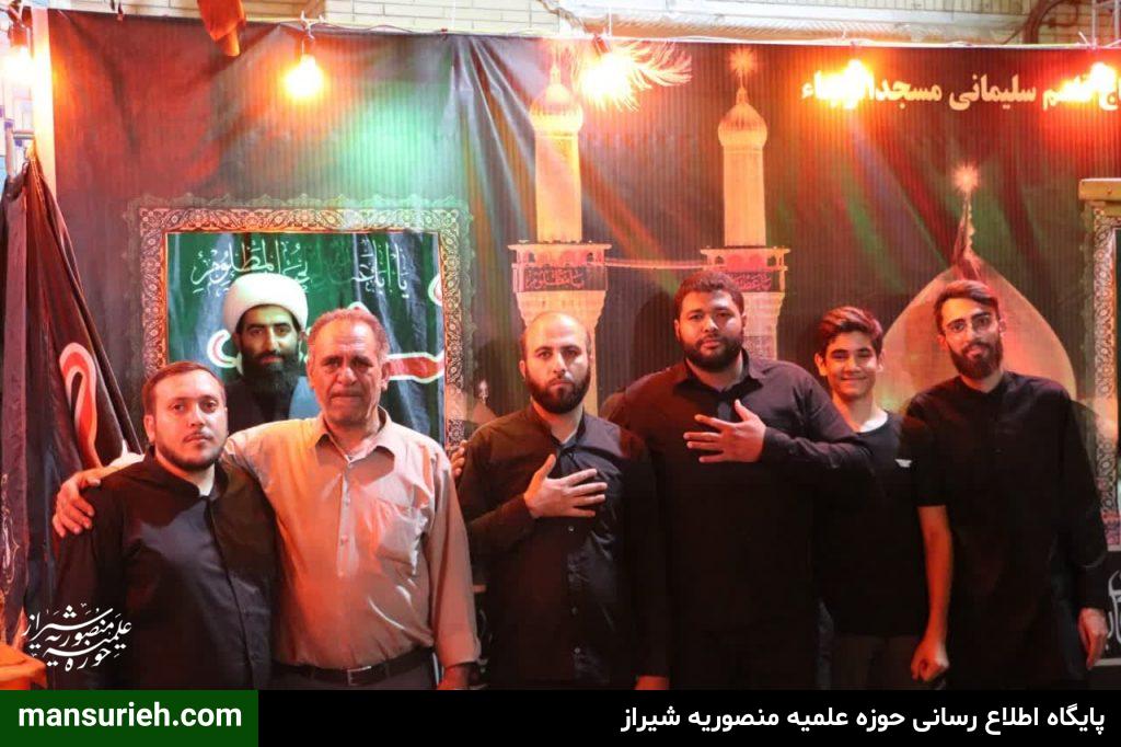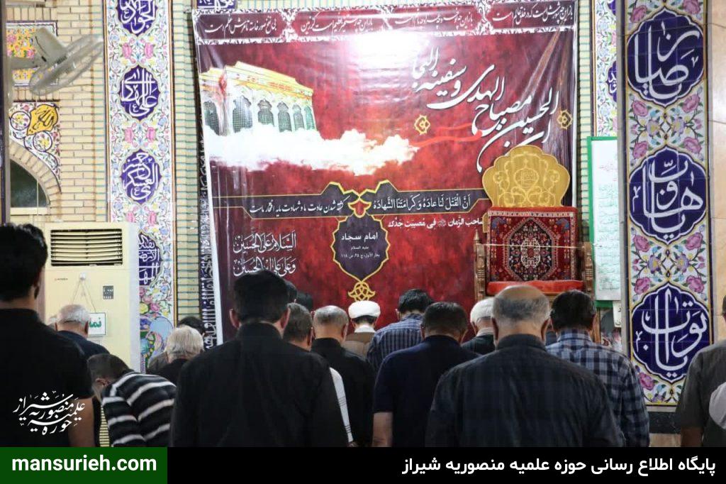 برگزاری مراسم عزداری و سوگواری سید السالار شهیدان آقا اباعبدالله حسین (ع) در منطقه یک شیراز به صورت مشترک با حضور آیت الله دژکام امام جمعه معزز و محترم و نماینده ولی فقیه در استان فارس و حجج السلام والمسلمین قانع ریاست محترم سازمان تبلیغات و امیدی مسئول امور مساجد فارس با محوریت مسجد الرجا برگزار شد که در ادامه این مراسم دسته سوگواری و عزاداری با محوریت هیئت امام جعفر صادق(ع) و همکاری برخی از هیئات مذهبی منطقه نسبت به برپایی ایستگاه صلواتی و خدمت به عزادارن حسینی برگزار گردید.