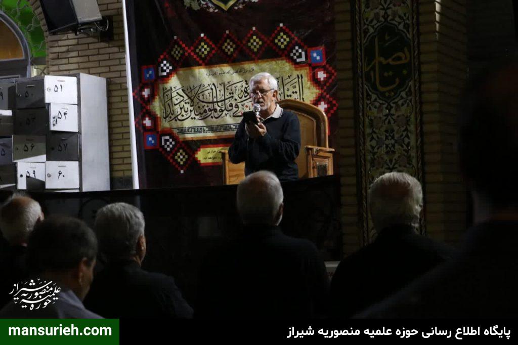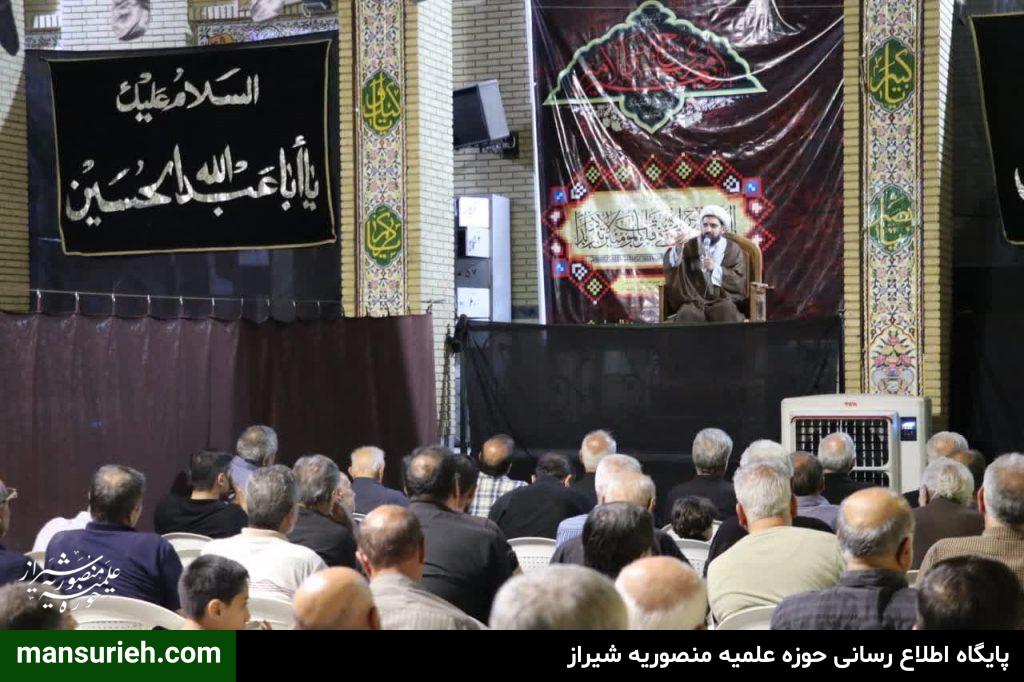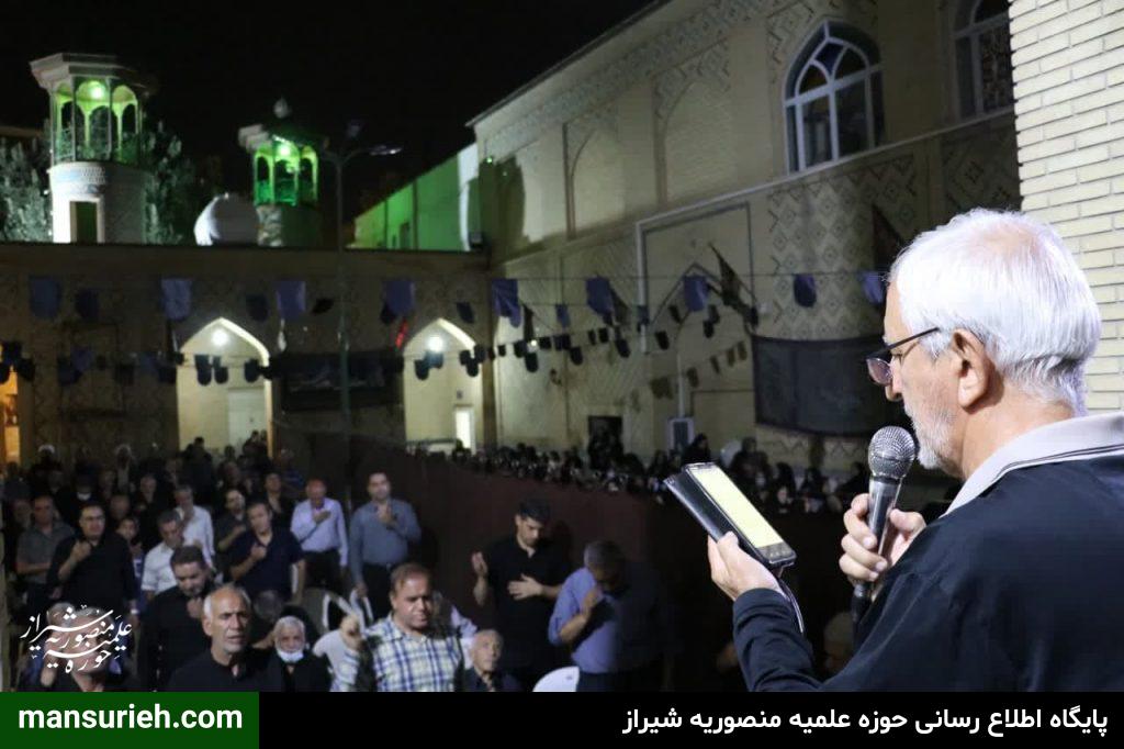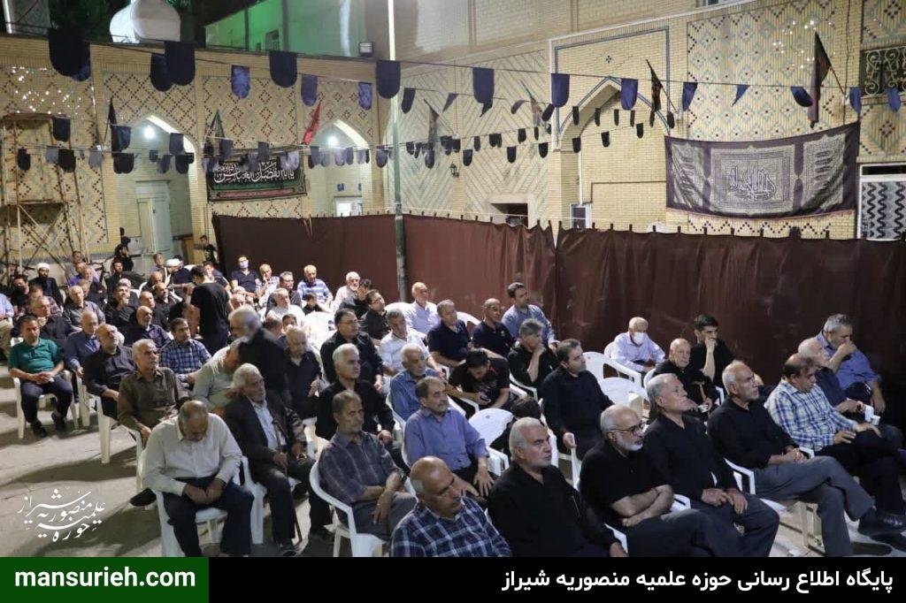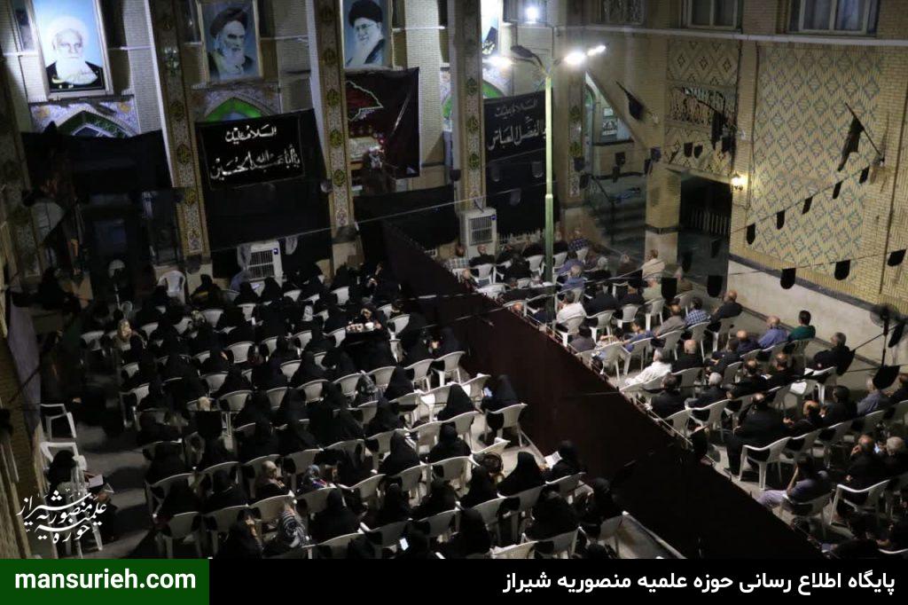 برگزاری مراسم عزداری و سوگواری سید السالار شهیدان آقا اباعبدالله حسین (ع) در منطقه یک شیراز به صورت مشترک با حضور آیت الله دژکام امام جمعه معزز و محترم و نماینده ولی فقیه در استان فارس و حجج السلام والمسلمین قانع ریاست محترم سازمان تبلیغات و امیدی مسئول امور مساجد فارس با محوریت مسجد الرجا برگزار شد که در ادامه این مراسم دسته سوگواری و عزاداری با محوریت هیئت امام جعفر صادق(ع) و همکاری برخی از هیئات مذهبی منطقه نسبت به برپایی ایستگاه صلواتی و خدمت به عزادارن حسینی برگزار گردید.
