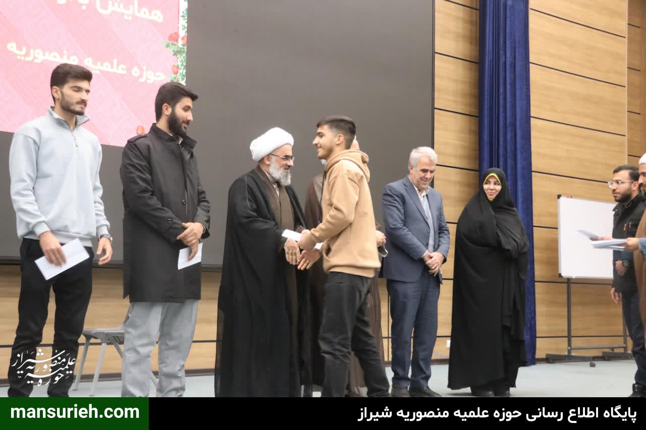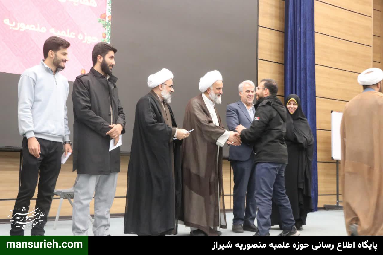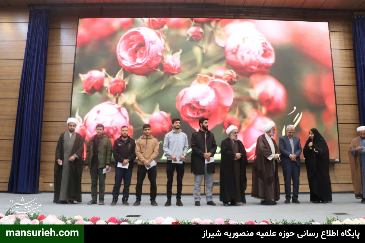 و در پایان این مراسم که با حضور بعضی از اعضای شورای شهر همراه بود از نفرات برگزیده جشنواره ورزشی طلاب استان که شامل اعضای تیم والیبال مدرسه علمیه منصوریه که مقام قهرمانی استان را کسب نموده بودند و دو نفر از طلاب قهرمان آمادگی جسمانی و نفرات راه یافته به مرحله کشوری مسابقات علمی ، و همچنین از برگزیدگان هشتمین دوره مادران فاطمی در بخش مقاله نویسی و کتاب خوانی تجلیل شد.