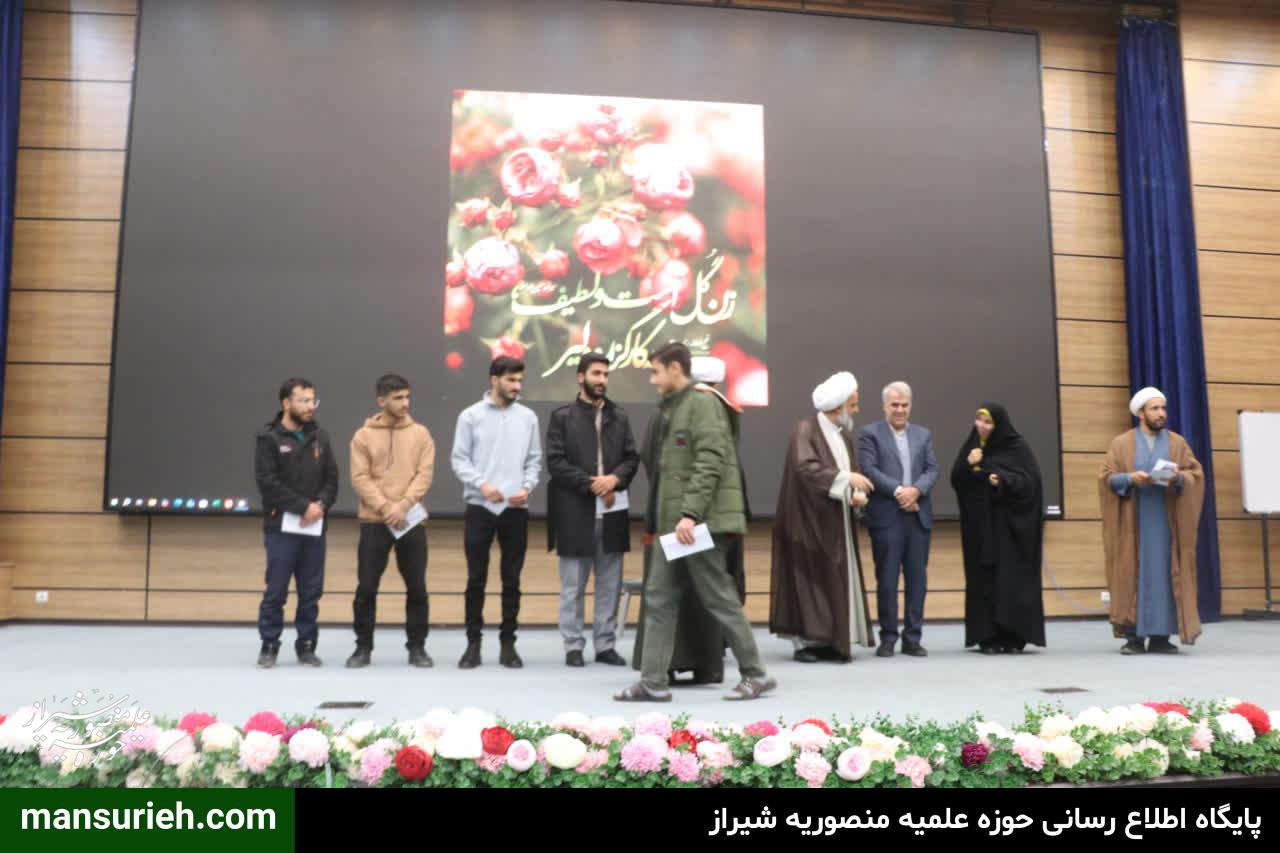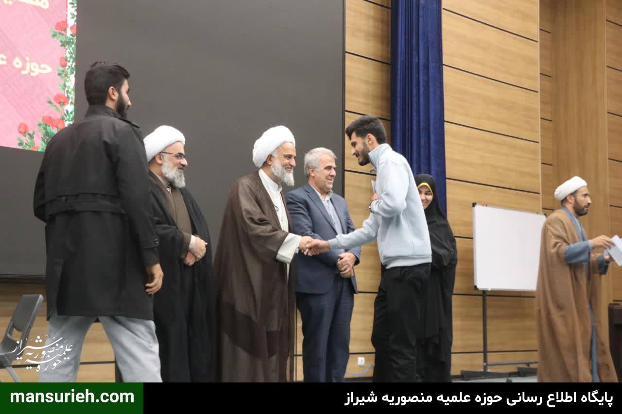 و در پایان این مراسم که با حضور بعضی از اعضای شورای شهر همراه بود از نفرات برگزیده جشنواره ورزشی طلاب استان که شامل اعضای تیم والیبال مدرسه علمیه منصوریه که مقام قهرمانی استان را کسب نموده بودند و دو نفر از طلاب قهرمان آمادگی جسمانی و نفرات راه یافته به مرحله کشوری مسابقات علمی ، و همچنین از برگزیدگان هشتمین دوره مادران فاطمی در بخش مقاله نویسی و کتاب خوانی تجلیل شد.