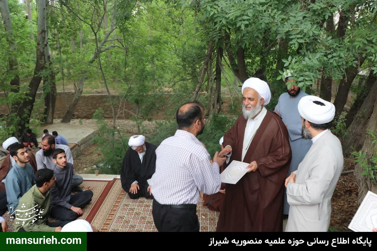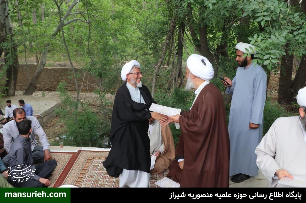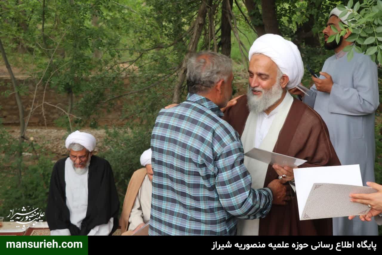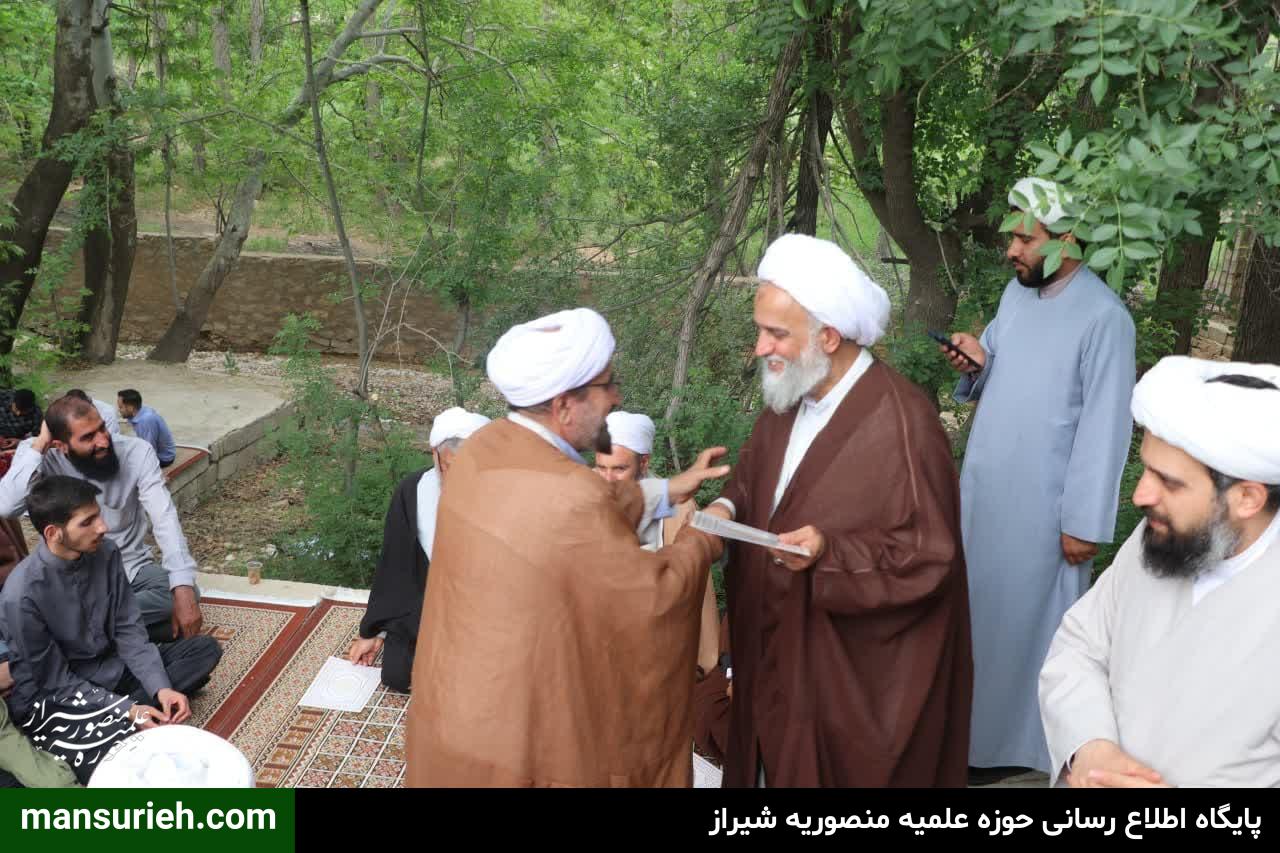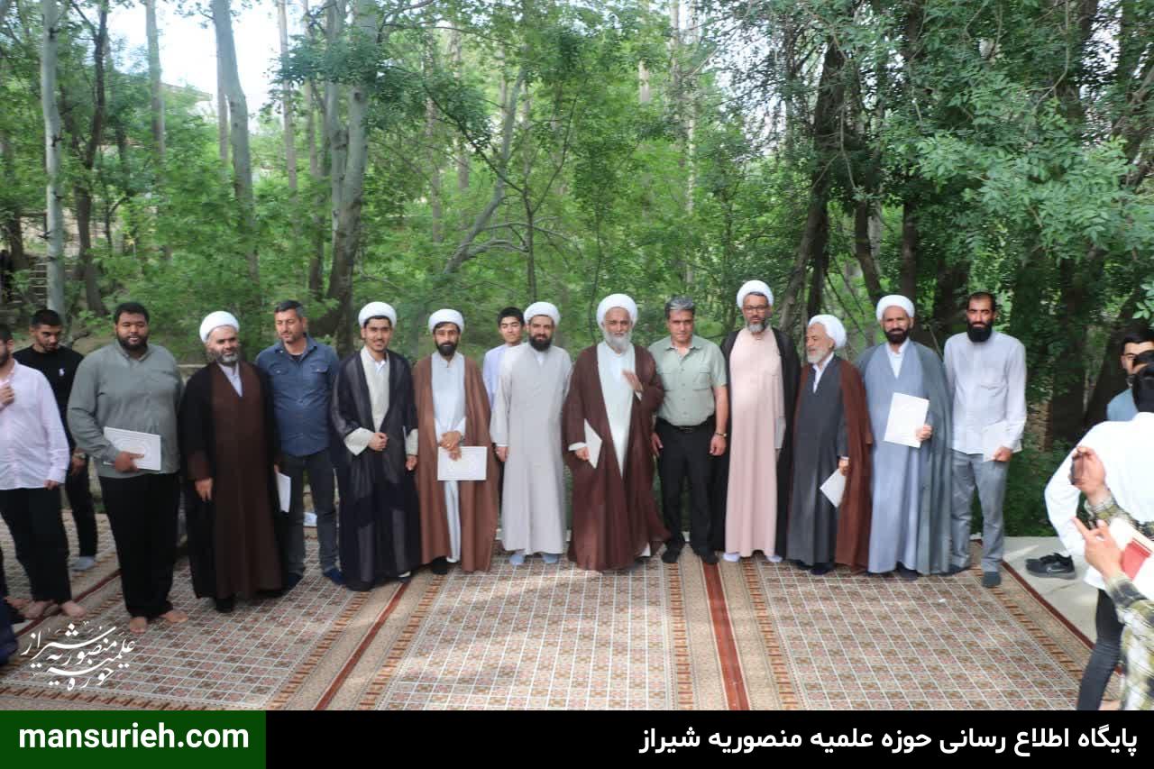 در این مراسم که به مناسبت گرامیداشت روز استاد و تجلیل از مقام اساتید برگزار گردید، بنابه تصمیم شورای معاونین مدرسه علمیه منصوریه اردوی ویژه اساتید،طلاب و کادر مدرسه در یکی از مناطق خوش آب و هوای اطراف شیراز برگزار گردید که در این مراسم با حضور حضرت استاد حاج شیخ علیرضا حدائق مسئول محترم مدرسه علمیه منصوریه از اساتید،معاونین،کادر و پرسنل این مدرسه تجلیل به عمل آمد