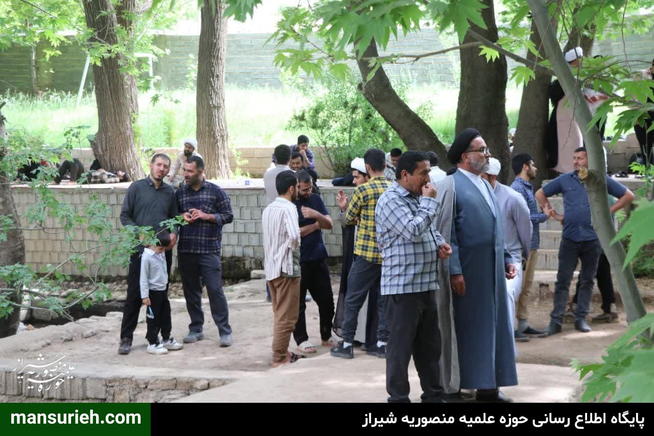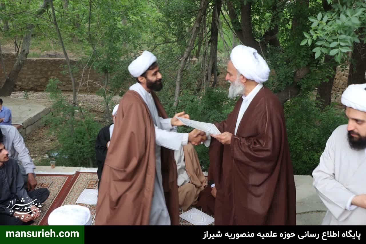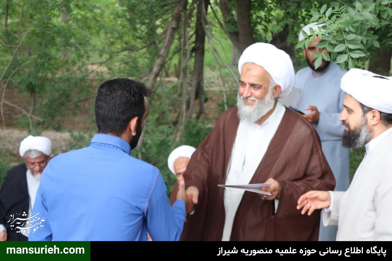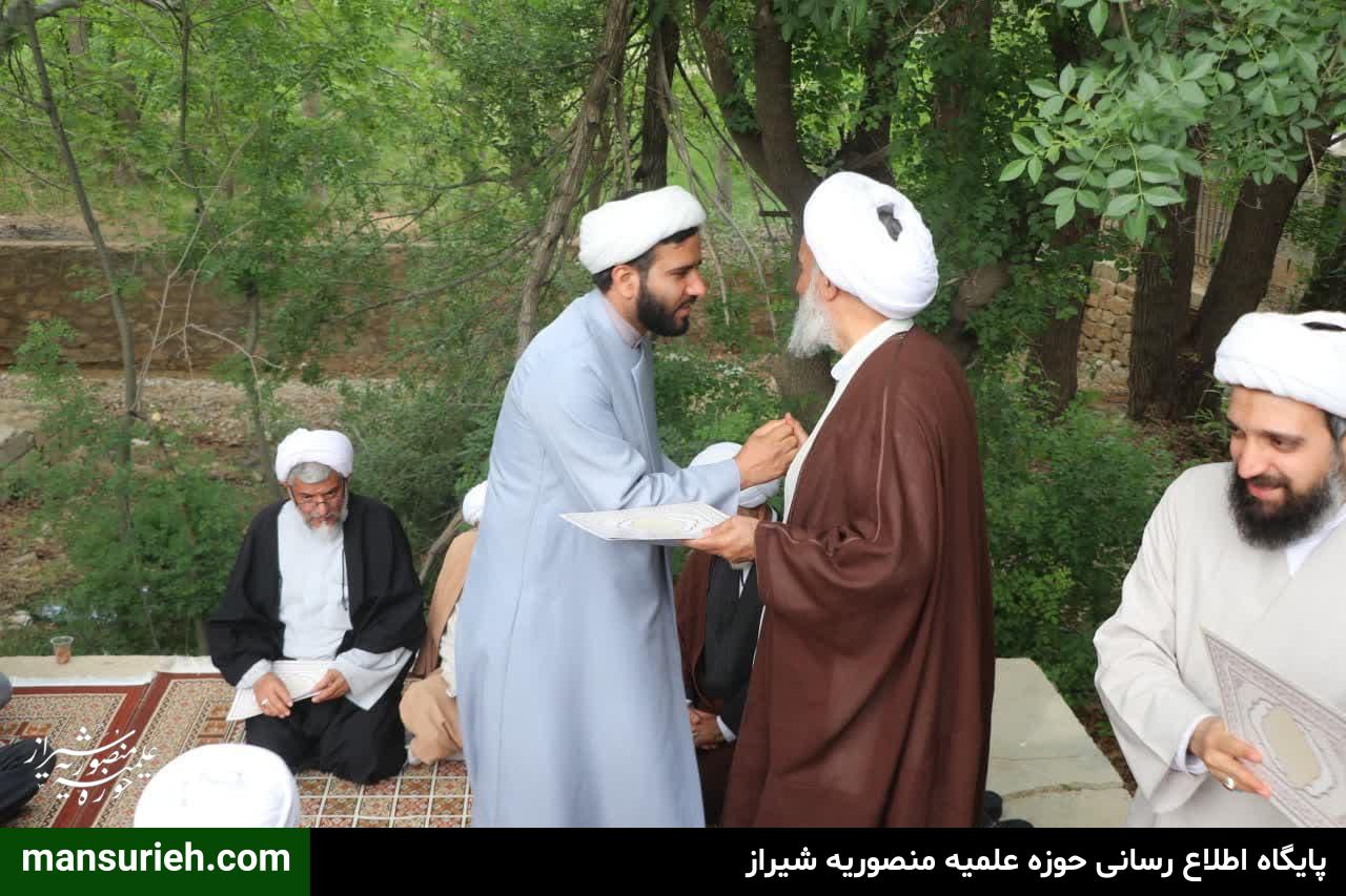در این مراسم که به مناسبت گرامیداشت روز استاد و تجلیل از مقام اساتید برگزار گردید، بنابه تصمیم شورای معاونین مدرسه علمیه منصوریه اردوی ویژه اساتید،طلاب و کادر مدرسه در یکی از مناطق خوش آب و هوای اطراف شیراز برگزار گردید که در این مراسم با حضور حضرت استاد حاج شیخ علیرضا حدائق مسئول محترم مدرسه علمیه منصوریه از اساتید،معاونین،کادر و پرسنل این مدرسه تجلیل به عمل آمد