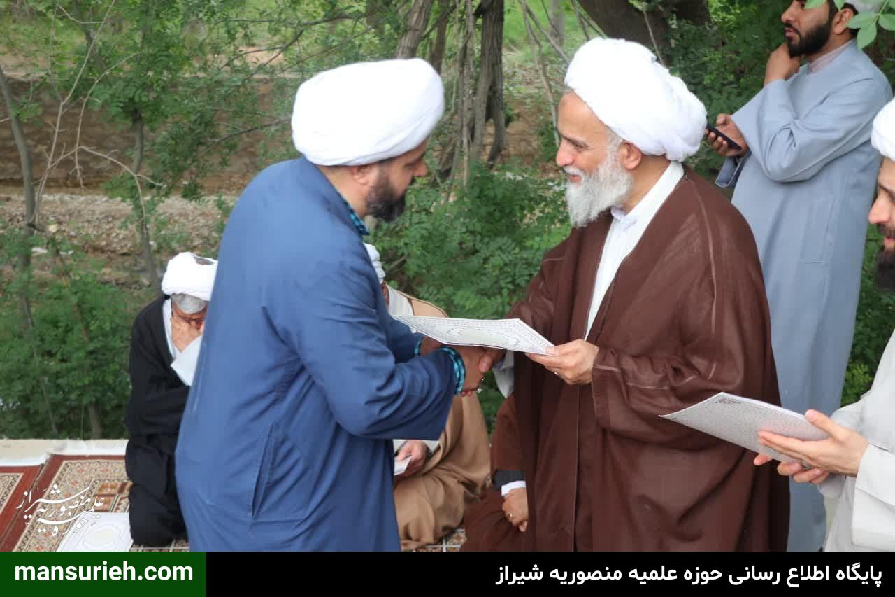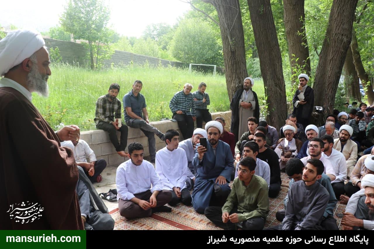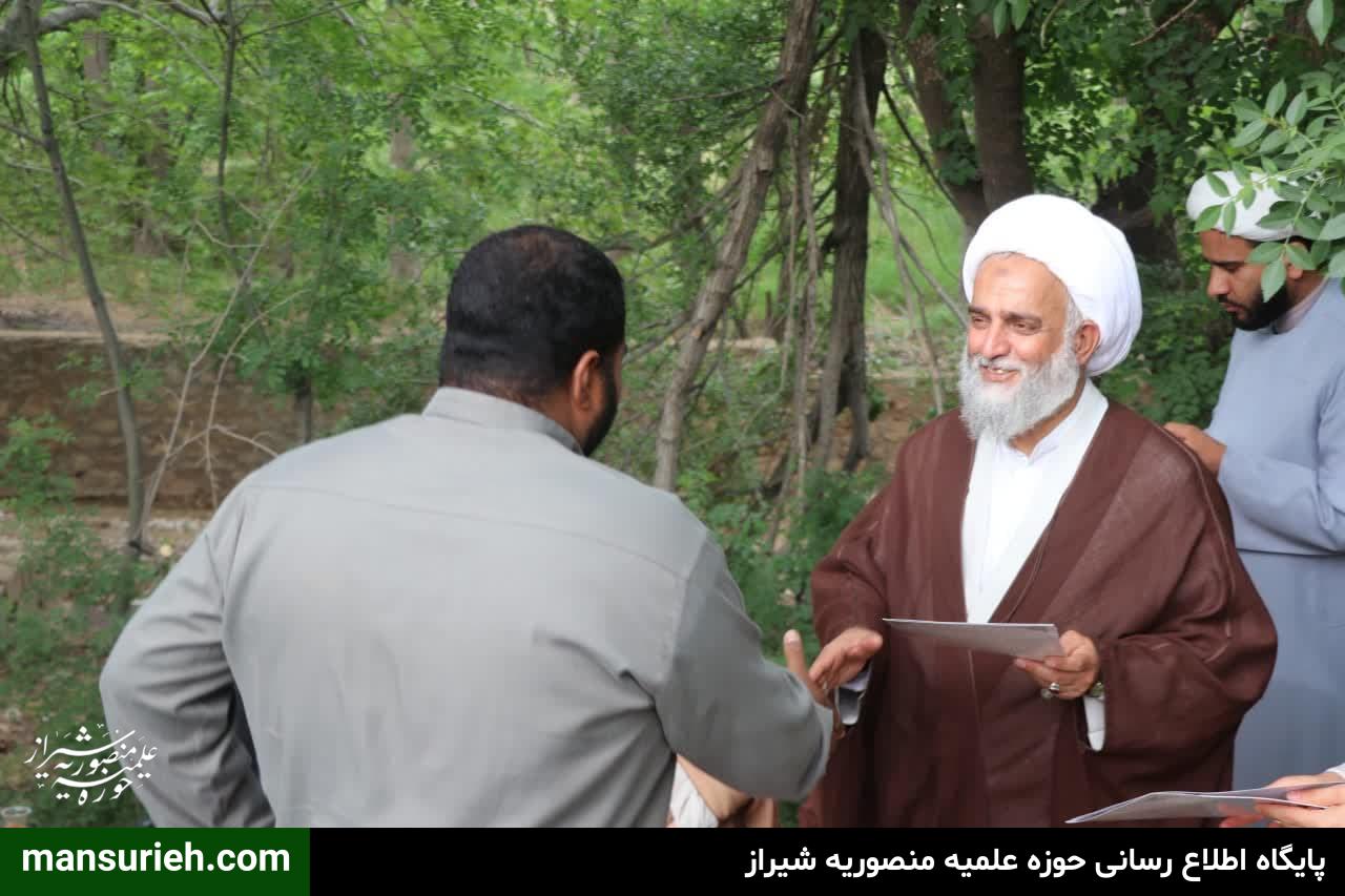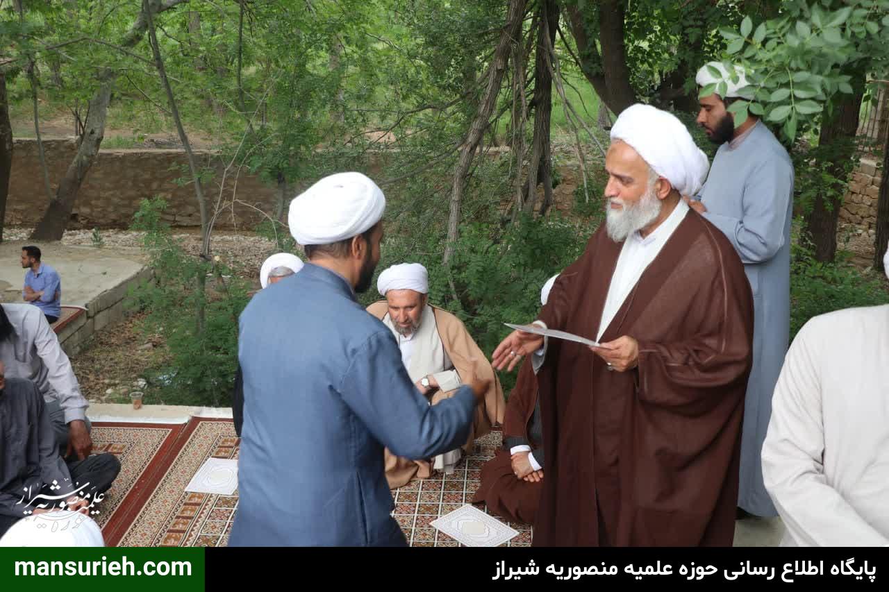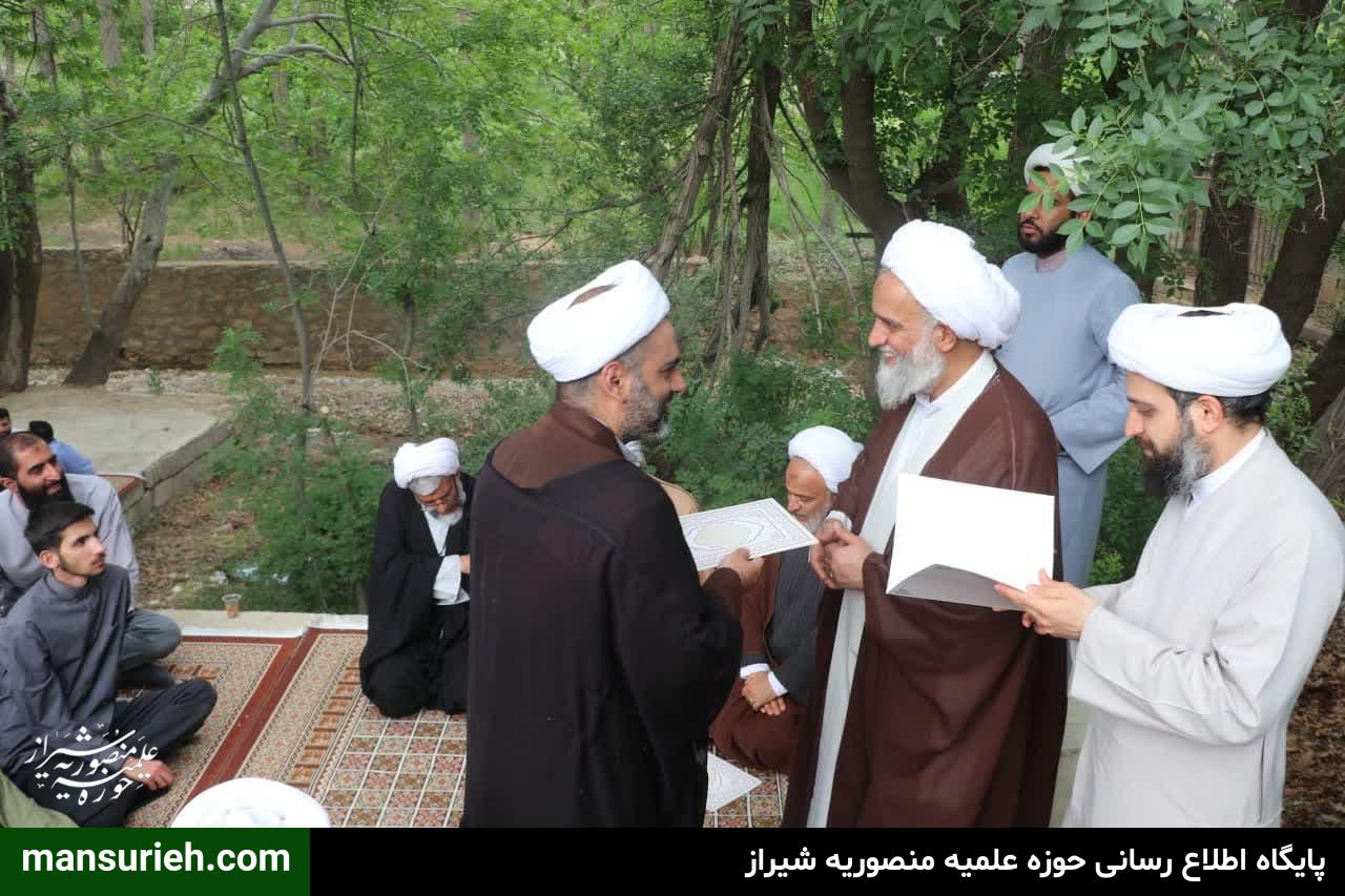 در این مراسم که به مناسبت گرامیداشت روز استاد و تجلیل از مقام اساتید برگزار گردید، بنابه تصمیم شورای معاونین مدرسه علمیه منصوریه اردوی ویژه اساتید،طلاب و کادر مدرسه در یکی از مناطق خوش آب و هوای اطراف شیراز برگزار گردید که در این مراسم با حضور حضرت استاد حاج شیخ علیرضا حدائق مسئول محترم مدرسه علمیه منصوریه از اساتید،معاونین،کادر و پرسنل این مدرسه تجلیل به عمل آمد