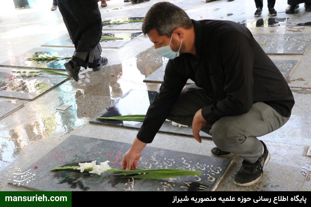 به مناسبت آغاز هفته دفاع مقدس طلاب، اساتید و کادر حوزه علمیه منصوریه با همت پایگاه مقاومت بسیج شهدای منصوریه در گلزار شهدا شیراز حضور یافتند و با شهدا تجدید عهد و میثاق بستند.