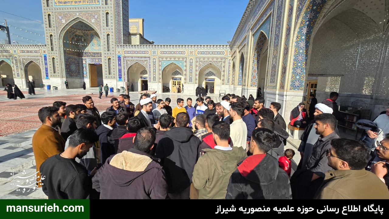 جمعی از اساتید،طلاب و مبلغین مدرسه علمیه منصوریه شیراز در جریان اردوی زیارتی–فرهنگی، با حضور در حرم مطهر حضرت امام رضا علیهالسلام، در برنامه حرمگردی و آشنایی با بخشهای مختلف این آستان مقدس شرکت کردند.