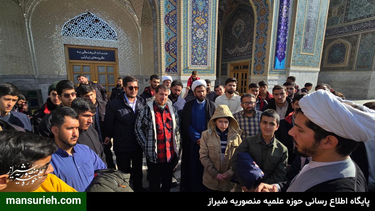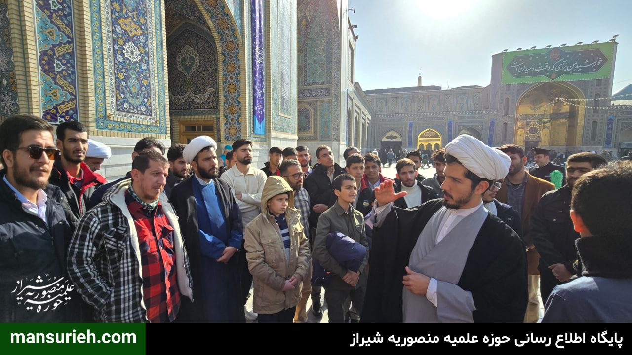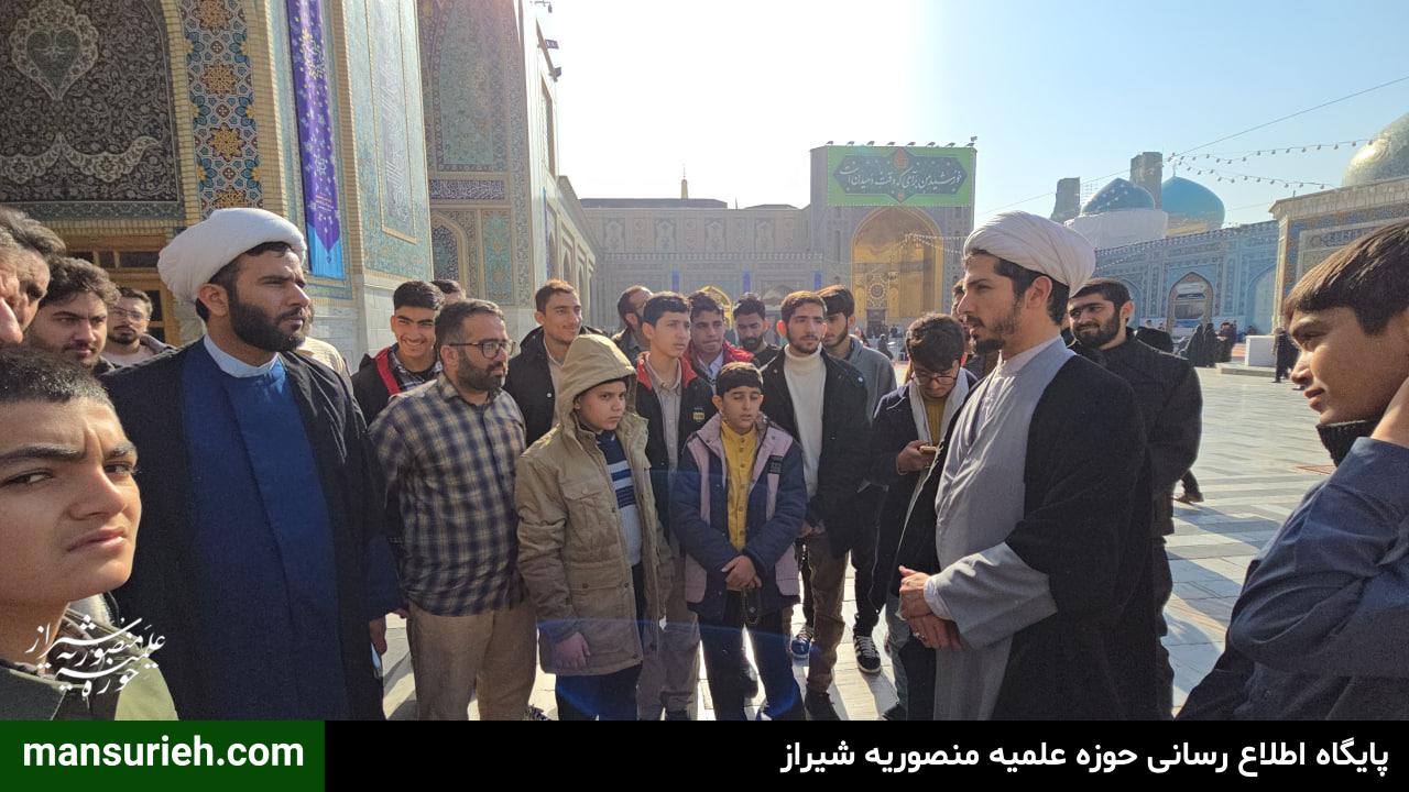 جمعی از اساتید،طلاب و مبلغین مدرسه علمیه منصوریه شیراز در جریان اردوی زیارتی–فرهنگی، با حضور در حرم مطهر حضرت امام رضا علیهالسلام، در برنامه حرمگردی و آشنایی با بخشهای مختلف این آستان مقدس شرکت کردند.