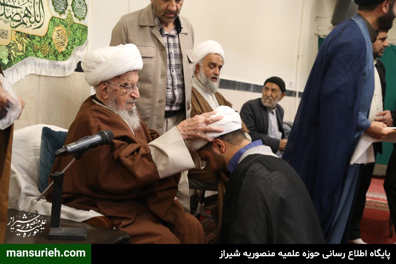 مراسم میلاد حضرت زهرا سلام الله علیها با سخنرانی حضرت استاد حاج شیخ علیرضا حدائق در مدرسه امیرالمومنین حضرت آیت الله العظمی مکارم شیرازی و تلبس ۹ نفر از طلاب مدرسه علمیه منصوریه در این مراسم