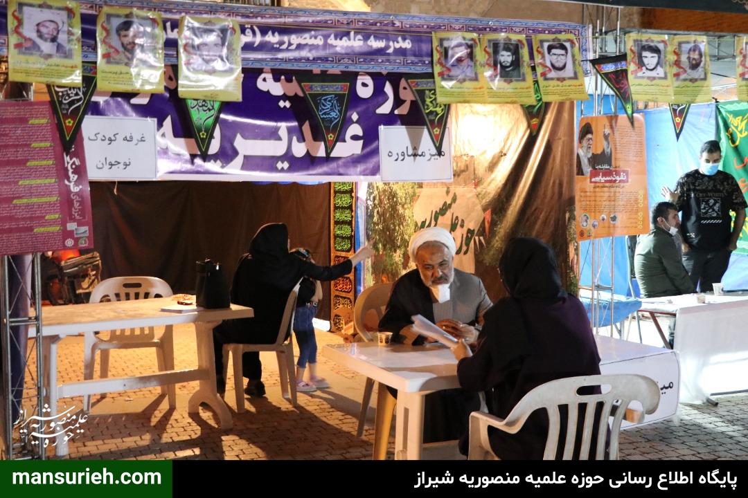 برپایی موکب قرارگاه عمار در ایام اربعین در بین الحرمین شیراز با خدمت رسانی و پذیرایی از زائرین با غرفه های کودک، مشاوره و پاسخگویی به سوالات شرعی