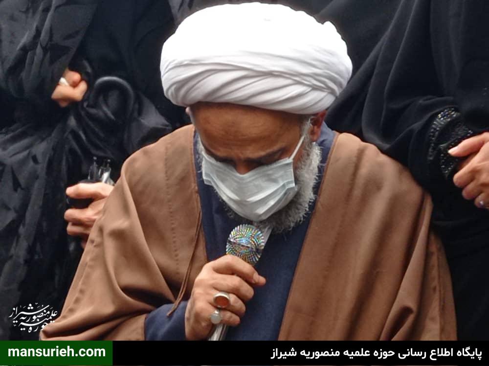 حضرت استاد حاج شیخ علیرضا حدائق مسئول حوزه علمیه منصوریه شیراز در این مراسم با اشاره به اینکه انسان مومن باید به فکر آخرت خود باشد، اظهار داشت: هیچ فردی از این دنیا ومادیات چیزی به ارث برای آخرت خود نخواهد برداز این رو باید با عمل صالح برای قیامت خود اجر و پاداش ذخیره کنیم.