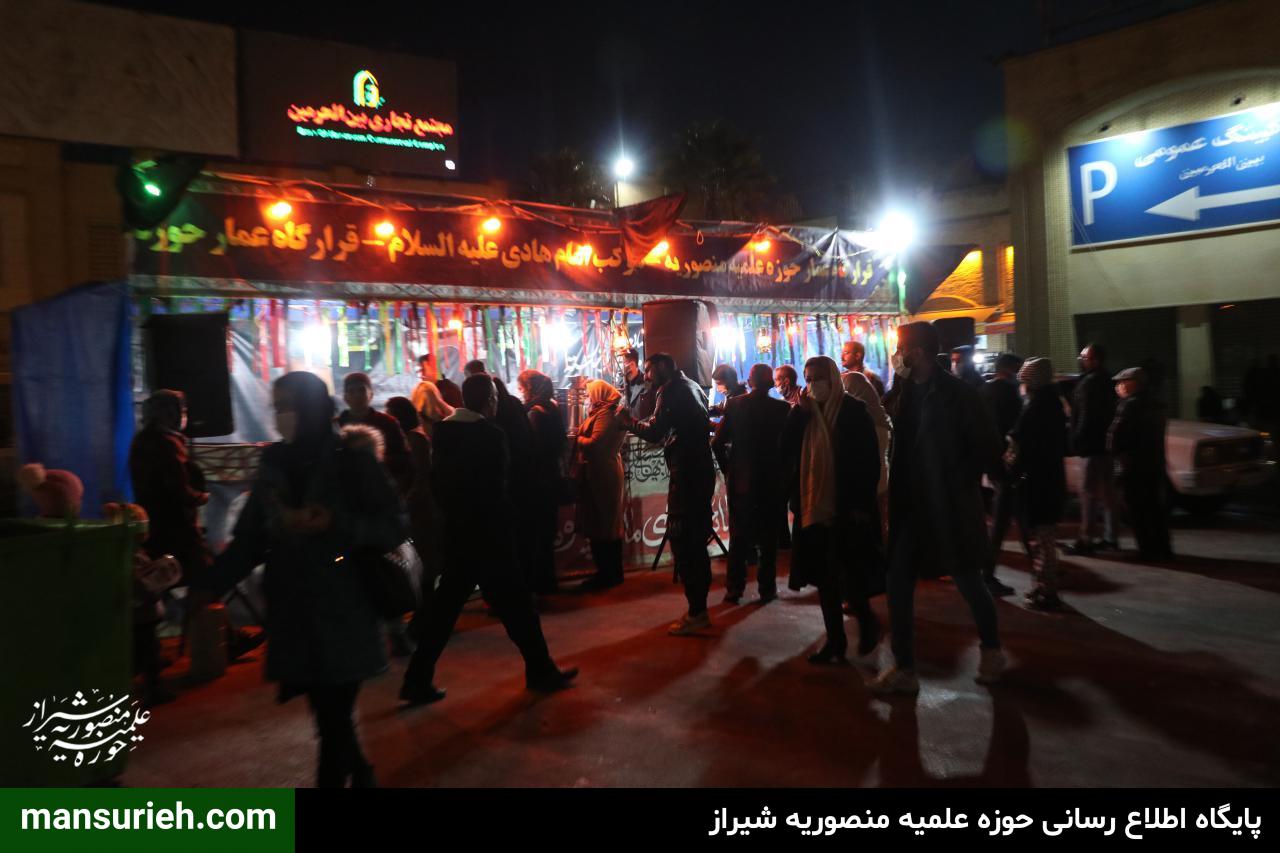 تصاویر| موکب واحد خواهران و برادران قرارگاه عمار در شام شهادت حضرت فاطمه زهرا(س) روبروی پاساژ بین الحرمین