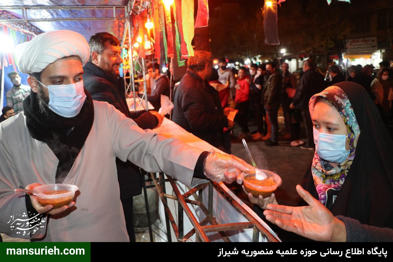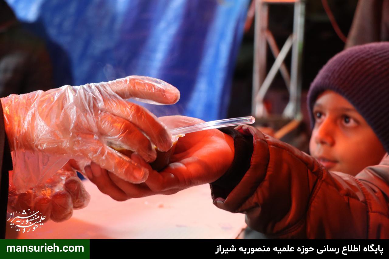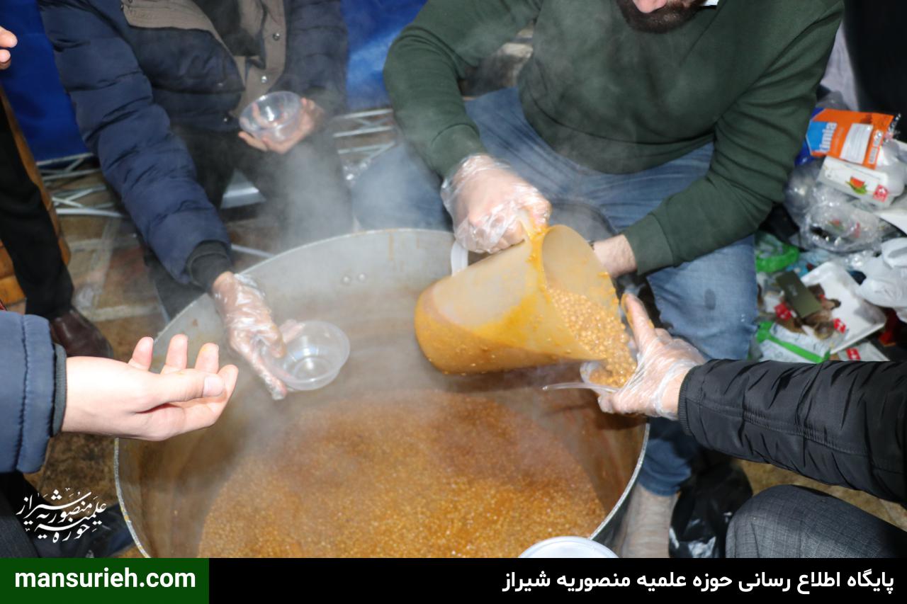خدمت رسانی به عموم مردم، زائرین مجاورین بارگاه حضرت آقا احمد بن موسی الکاظم علیه السلام از ظهر تا شام شهادت به صورت مستمر