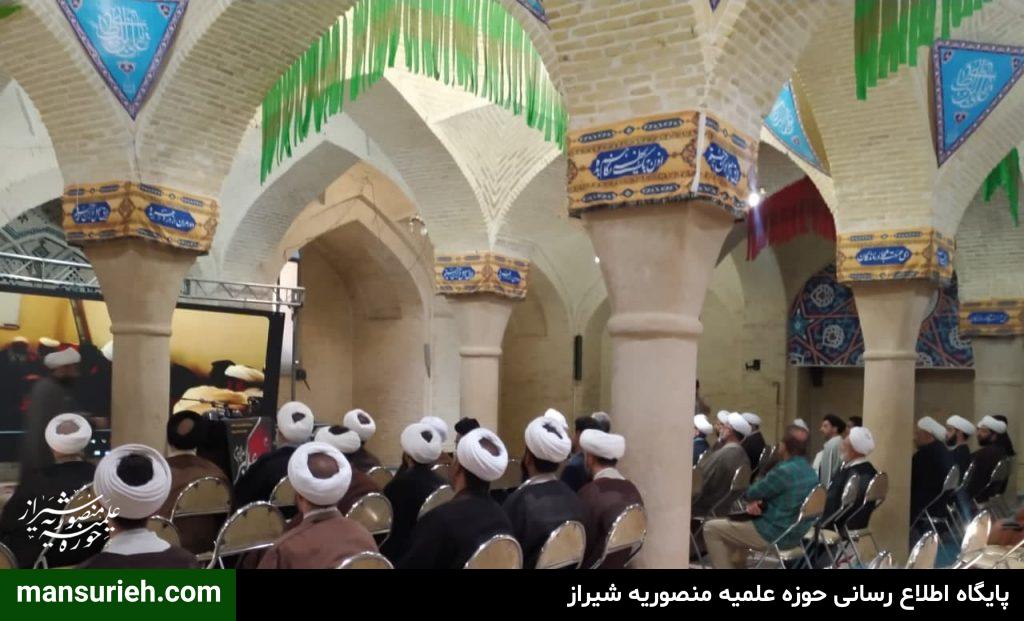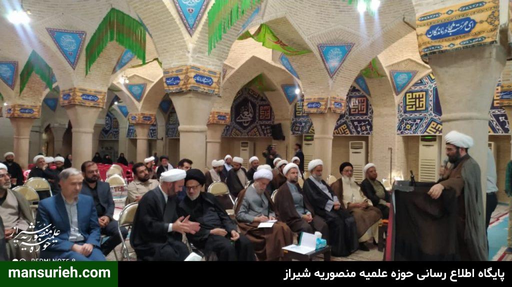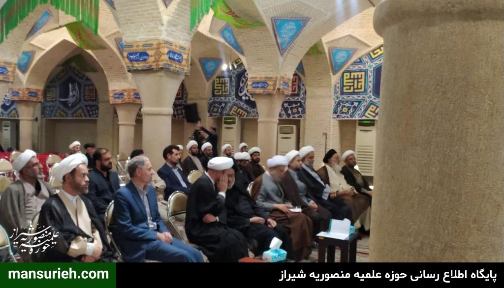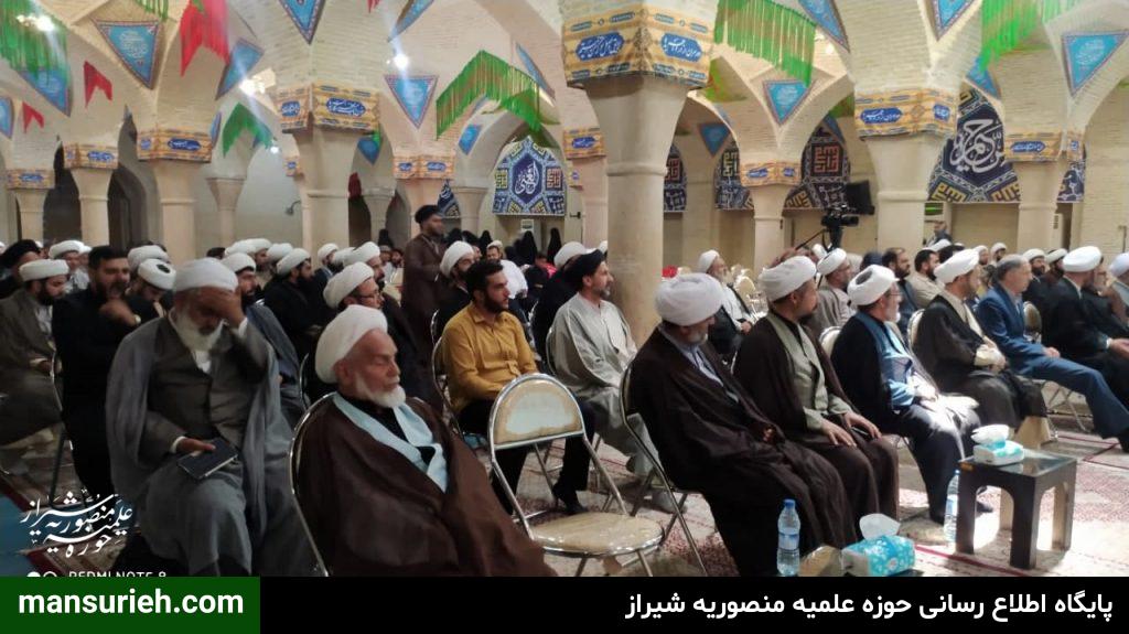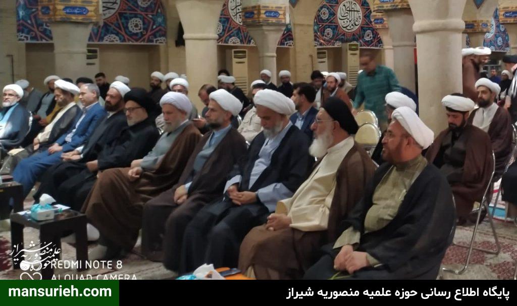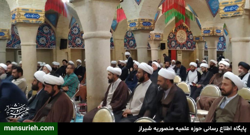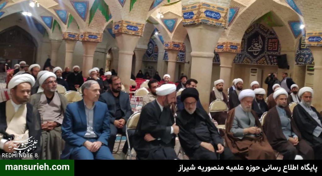 این مراسم که با سخنرانی حضرت آیت الله دژکام و حجت الاسلام والمسلمین دکتر محمودی ریاست محترم مرکز مدیریت حوزه علمیه فارس و جناب آقای دکتر موذنی ریاست محترم دانشگاه و جناب آقای دکتر بهشتی عضو محترم خبرگان رهبری و حجت الاسلام والمسلمین دکتر کلانتری تولیت آستان مقدس احمدی و محمدی علیهماالسلام و با حضور مسئول مدرسه علمیه منصوریه حضرت استاد حاج شیخ علیرضا حدائق ، مدیر و معاونین و اساتید و جمعی از طلاب مدرسه علمیه منصوریه در مسجد شهدا برگزار گردید