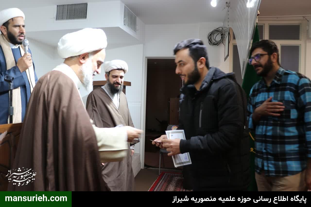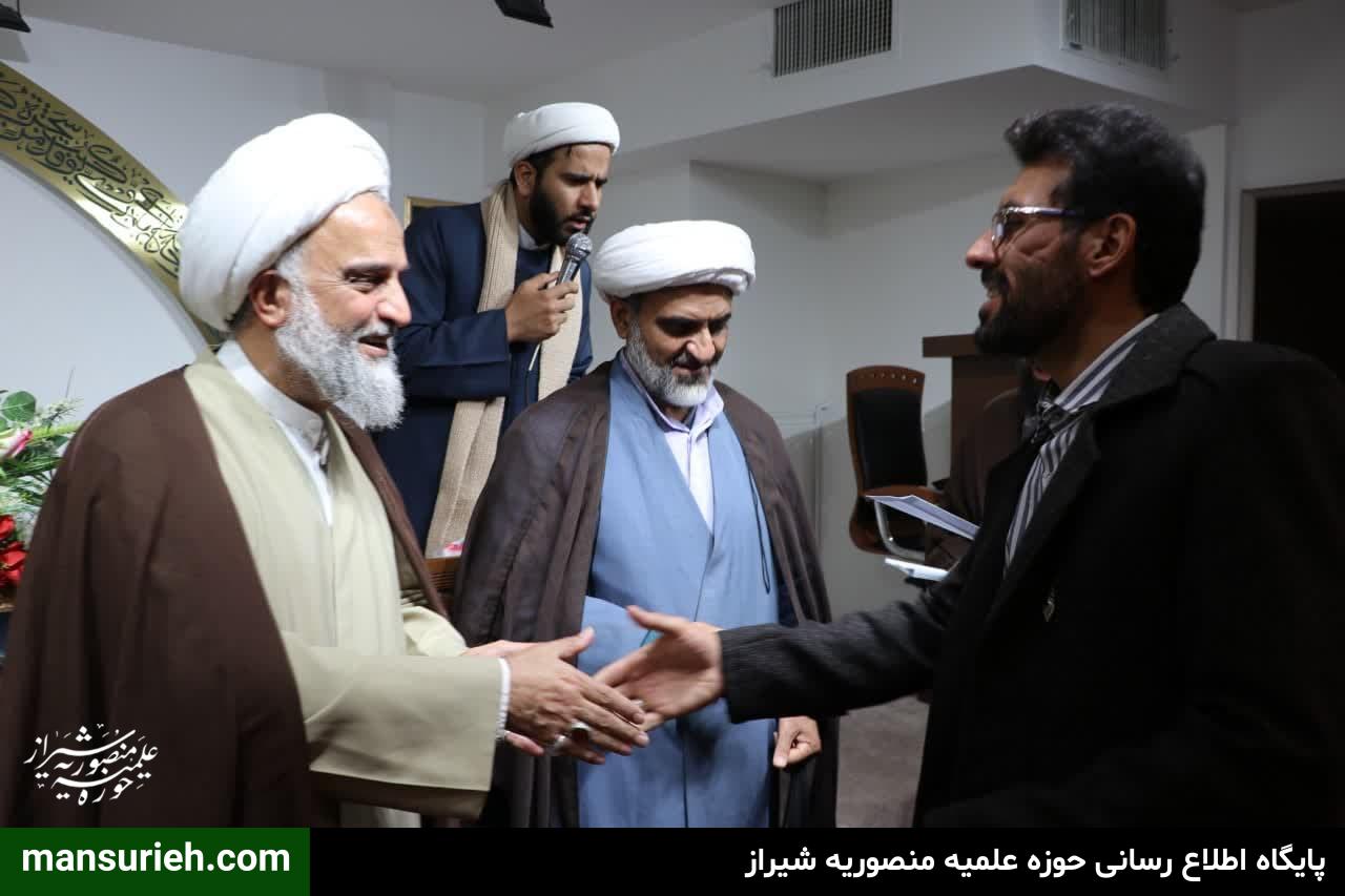 که این مراسم با سخنرانی حضرت استاد حاج شیخ علیرضا حدائق برگزار شد و در انتهای این مراسم از تیم ورزشی شهید توحیدی فوتسال مدرسه علمیه منصوریه که رتبه اول مسابقه فوتسال استان در جام ورزشی حوزه های علمیه را کسب کردند و همچنین از نفرات برتر پژوهشی در جشنواره علامه حلی و نفرات برتر آموزشی این حوزه در ترم دوم سال گذشته توسط حضرت استاد حاج شیخ علیرضا حدائق تجلیل به عمل آمد.