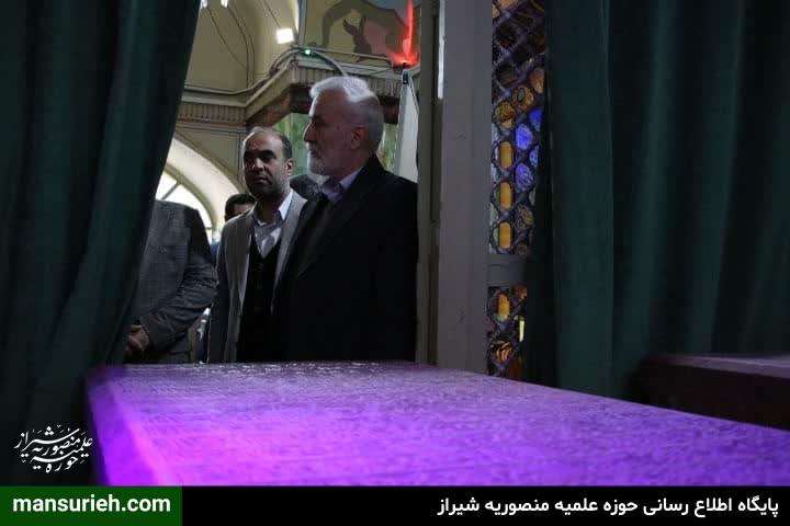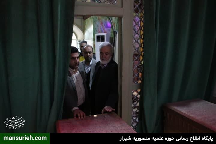 جناب آقای دکتر اسدی و شهردار منطقه ۸ و جمعی از شهرداران مناطق مختلف و هئیت همراه بازدیدی از مدرسه علمیه منصوریه و جلسه ای با مسئول و مدیر مدرسه علمیه منصوریه داشتند و در پایان این دیدار بر سر تربت واقف و بانی مدرسه سید شهید، سید سند صدرالدین محمد دشتکی و امیر غیاث الدین منصور حضور پیدا کردند.