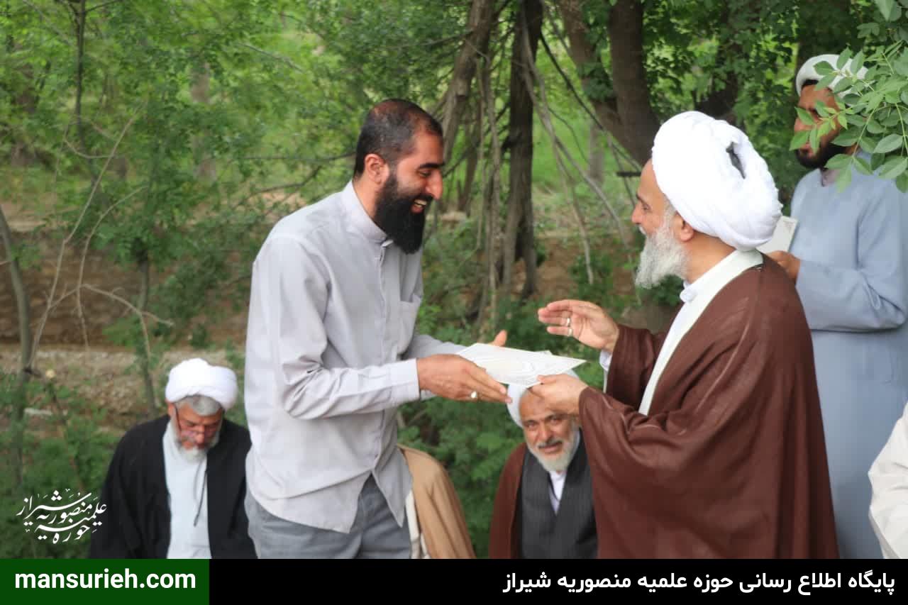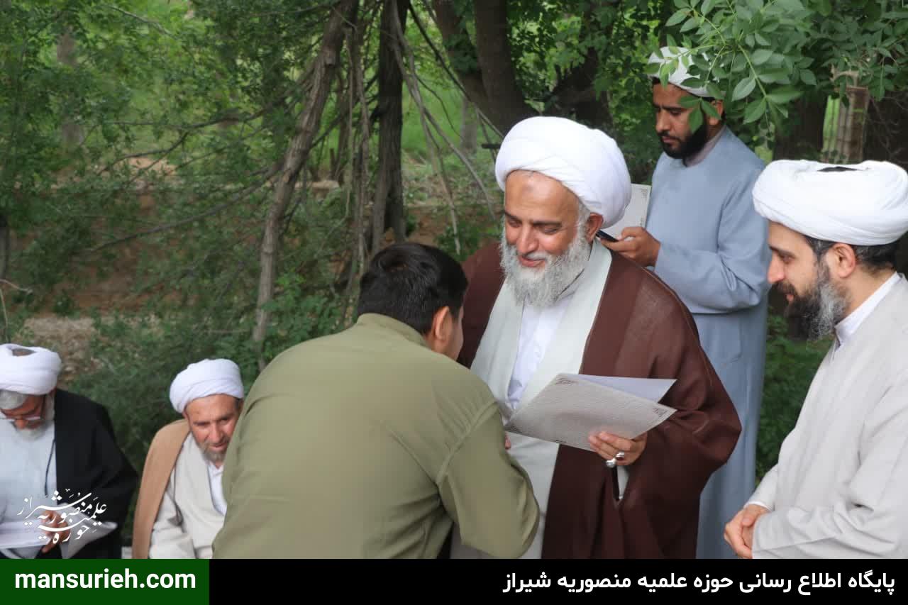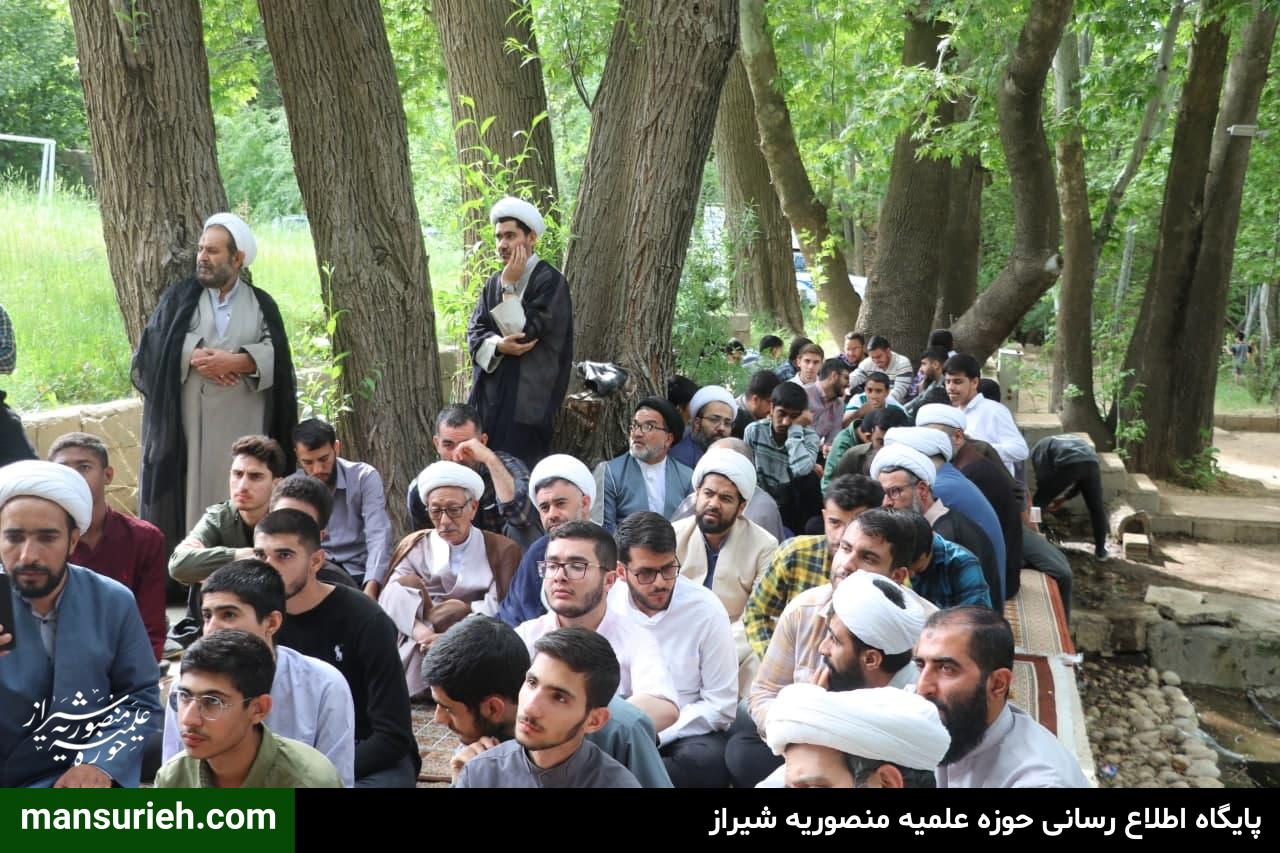 در این مراسم که به مناسبت گرامیداشت روز استاد  و تجلیل از مقام اساتید برگزار گردید، بنابه تصمیم شورای معاونین مدرسه علمیه منصوریه اردوی ویژه اساتید،طلاب و کادر مدرسه در یکی از مناطق خوش آب و هوای اطراف شیراز برگزار گردید که در این مراسم با حضور حضرت استاد حاج شیخ علیرضا حدائق مسئول محترم مدرسه علمیه منصوریه از اساتید،معاونین،کادر و پرسنل این مدرسه تجلیل به عمل آمد
