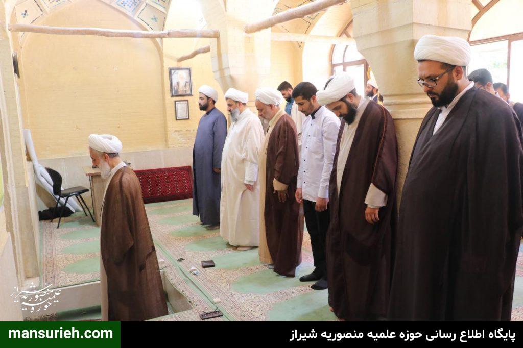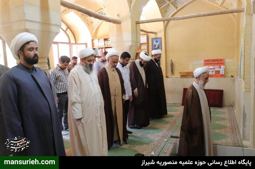 در حاشیه برگزاری پیش همایش حوزه انقلابی حوزه منتظر حضرت آیت الله صدیقی با حضور حضرت استاد حاج شیخ علیرضا حدائق نماز ظهر را در مسجد حوزه علمیه منصوریه اقامه کردند و از حوزه علمیه منصوریه بازدید کردند.
