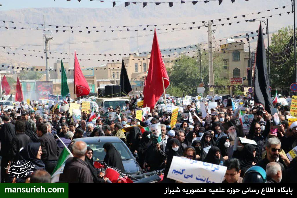همزمان با فرا رسیدن سالروز رحلت پیامبر گرامی اسلام(ص) و شهادت امام حسن مجتبی(ع)، راهپیمایی و تجمع اعتراض‌آمیز شهروندان شیراز به منظور محکومیت اهانت به مقدسات با عنوان «امت رسول‌الله(ص)» در شیراز و دیگر شهرهای فارس برگزار شد.