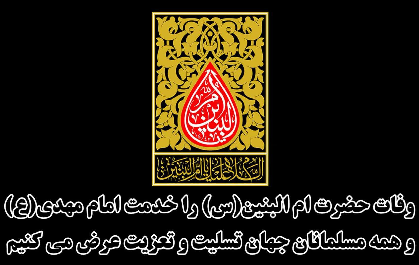وفات همسر جلیل القدر امیرالمؤمنین علیه السلام، أمَّ العباس(علیه السلام)؛ حضرت اُمُّ البنین علیها السلام، خدمت حضرت ولیّ عصر عجل الله تعالی فرجه و همه شیعیان و محبّان اهل‌بیت(علیهم السلام) تسلیت باد.