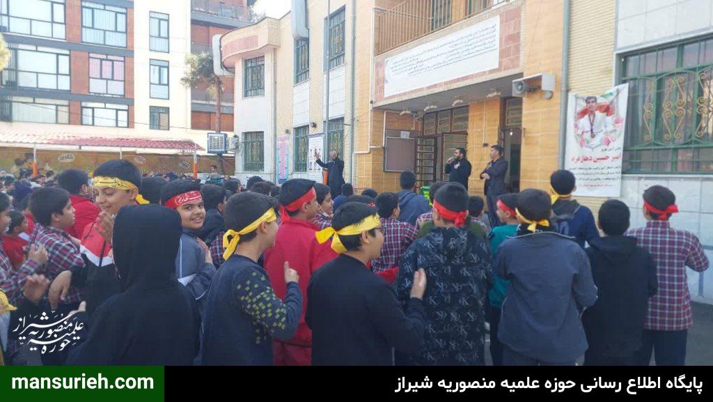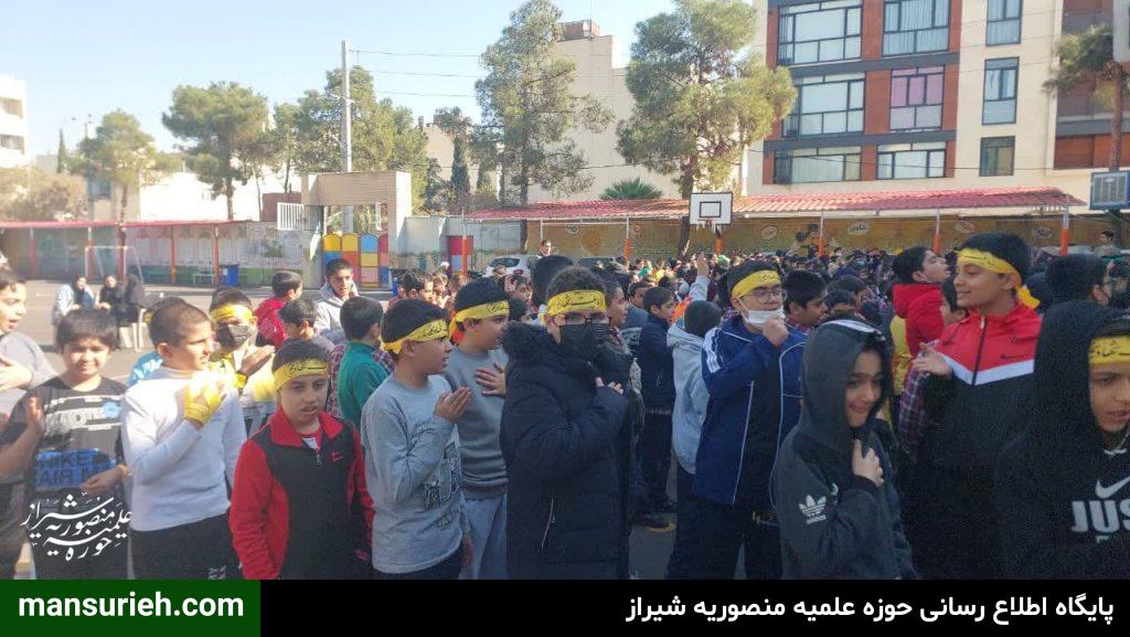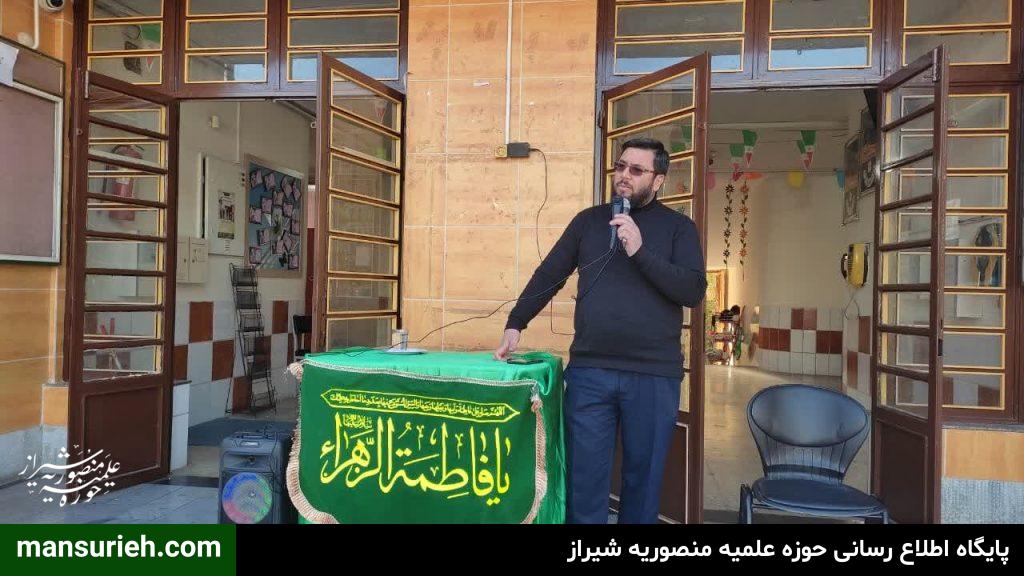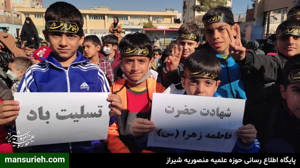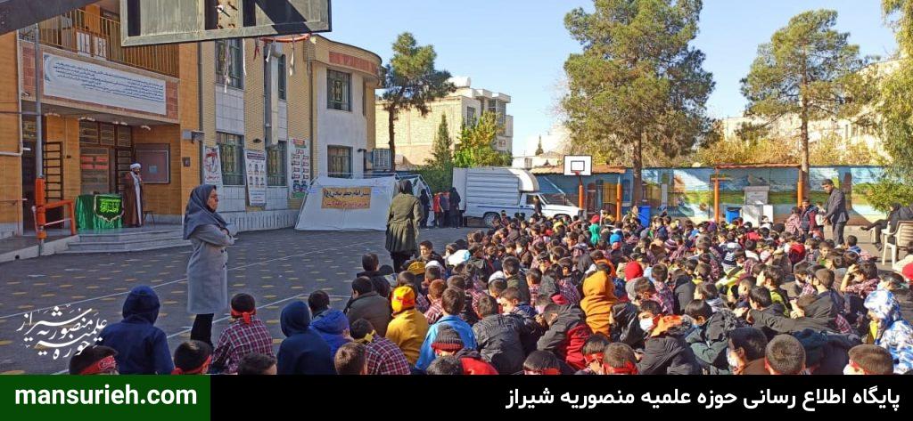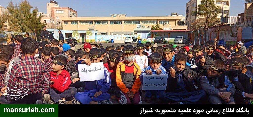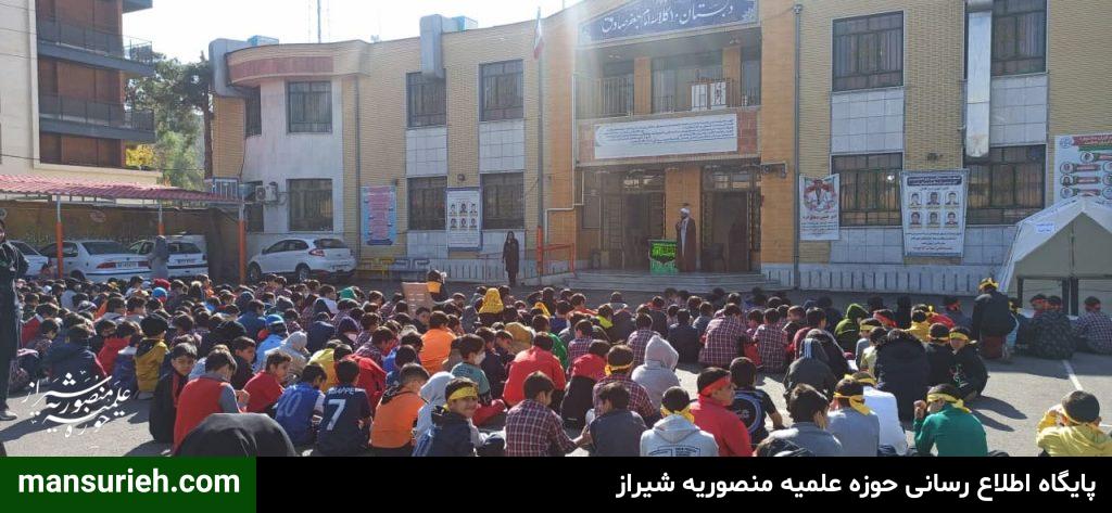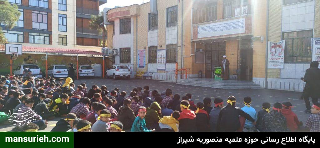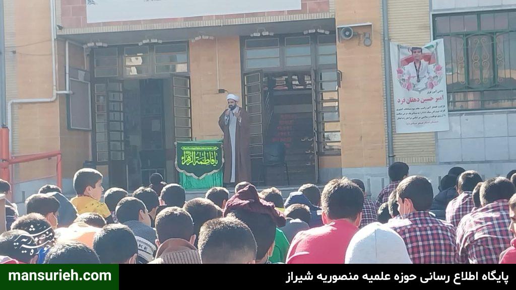 این مراسم به همت مبلغین قرارگاه عمار مدرسه علمیه منصوریه برگزار گردید که با حضور ۴۵۰ دانش آموز پسر مراسم سخنرانی و سینه زنی و عزاداری حضرت فاطمه زهرا سلام الله علیها برگزار گردید و در پایان مراسم هم دانش آموزان ، مهمان سفره با برکت حضرت فاطمه زهرا سلام الله علیها به همت قرارگاه عمار مدرسه علمیه منصوریه بودند