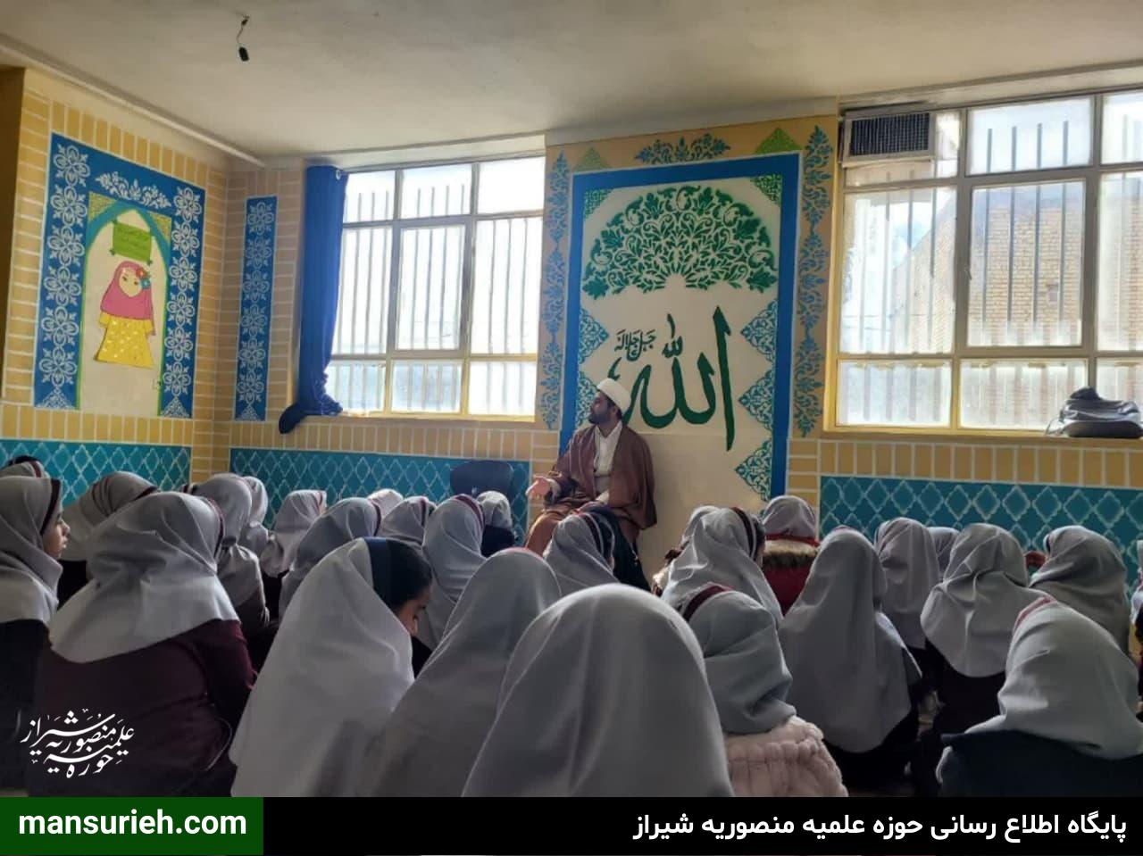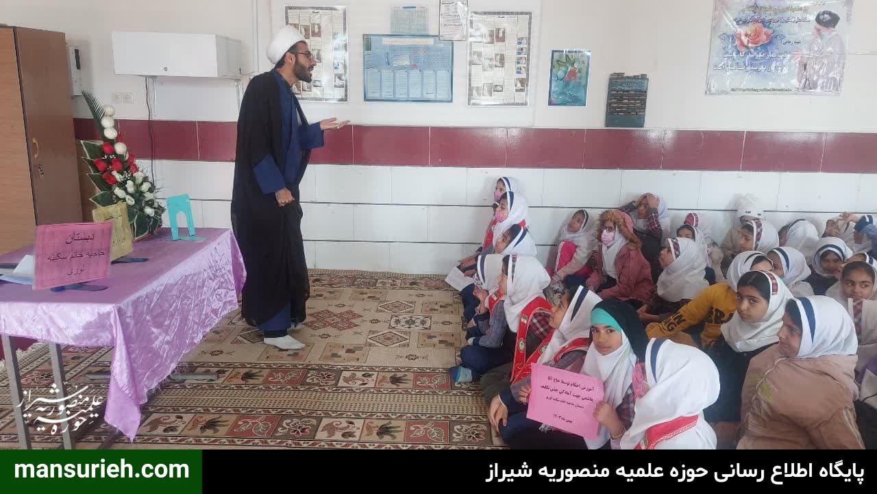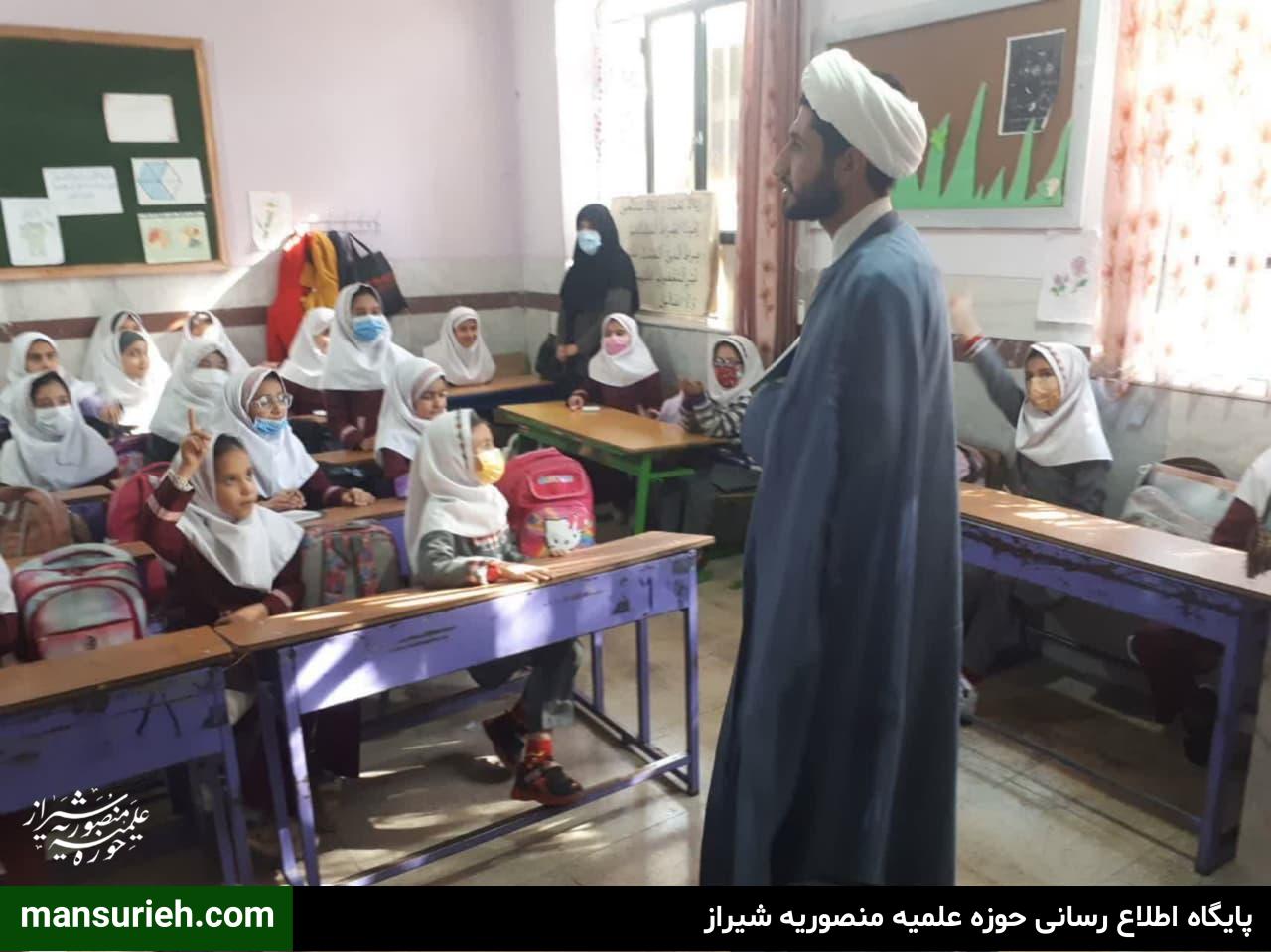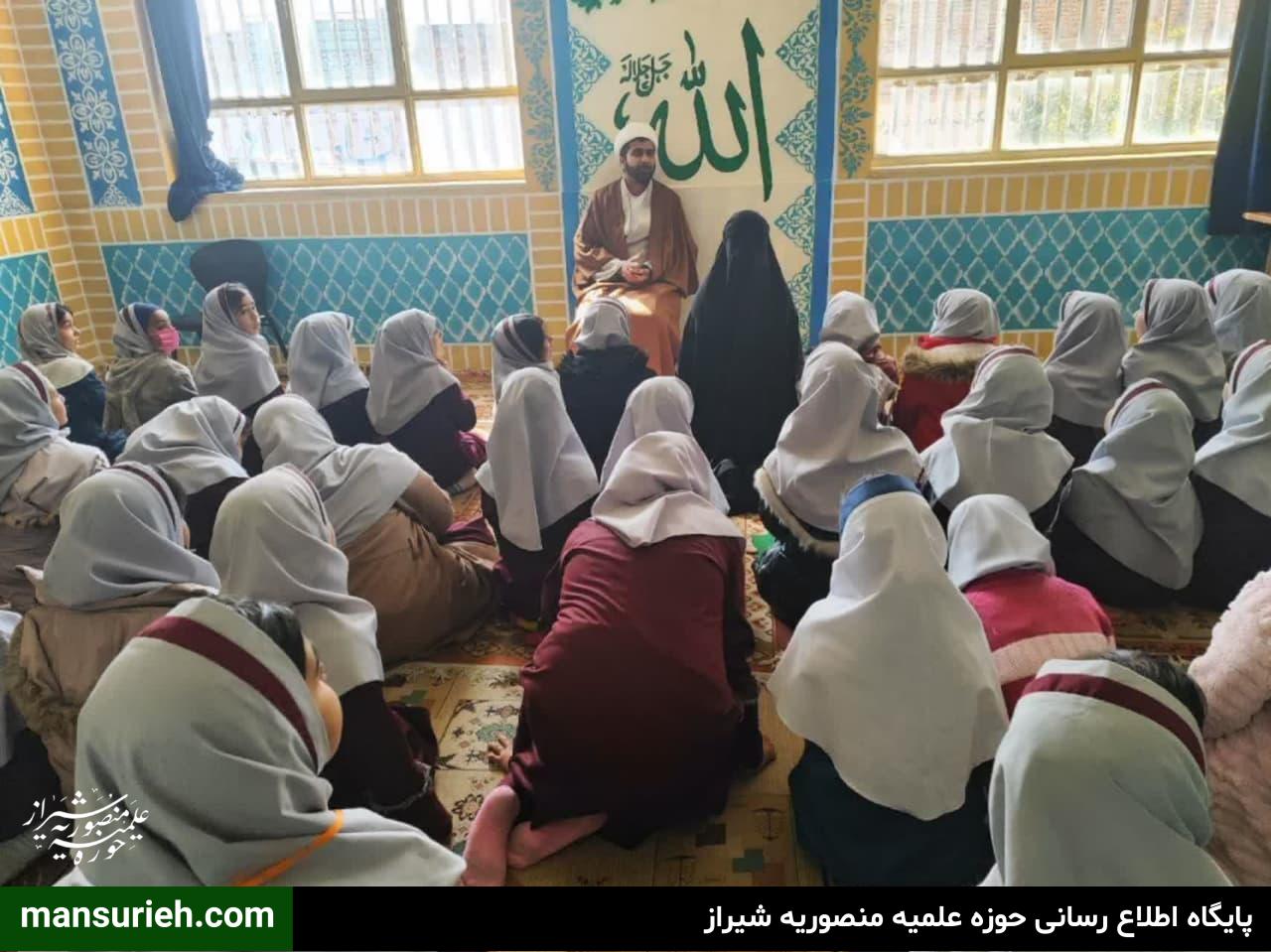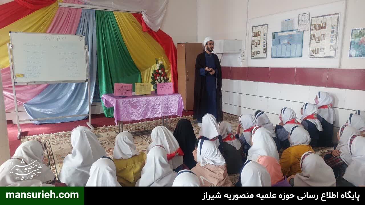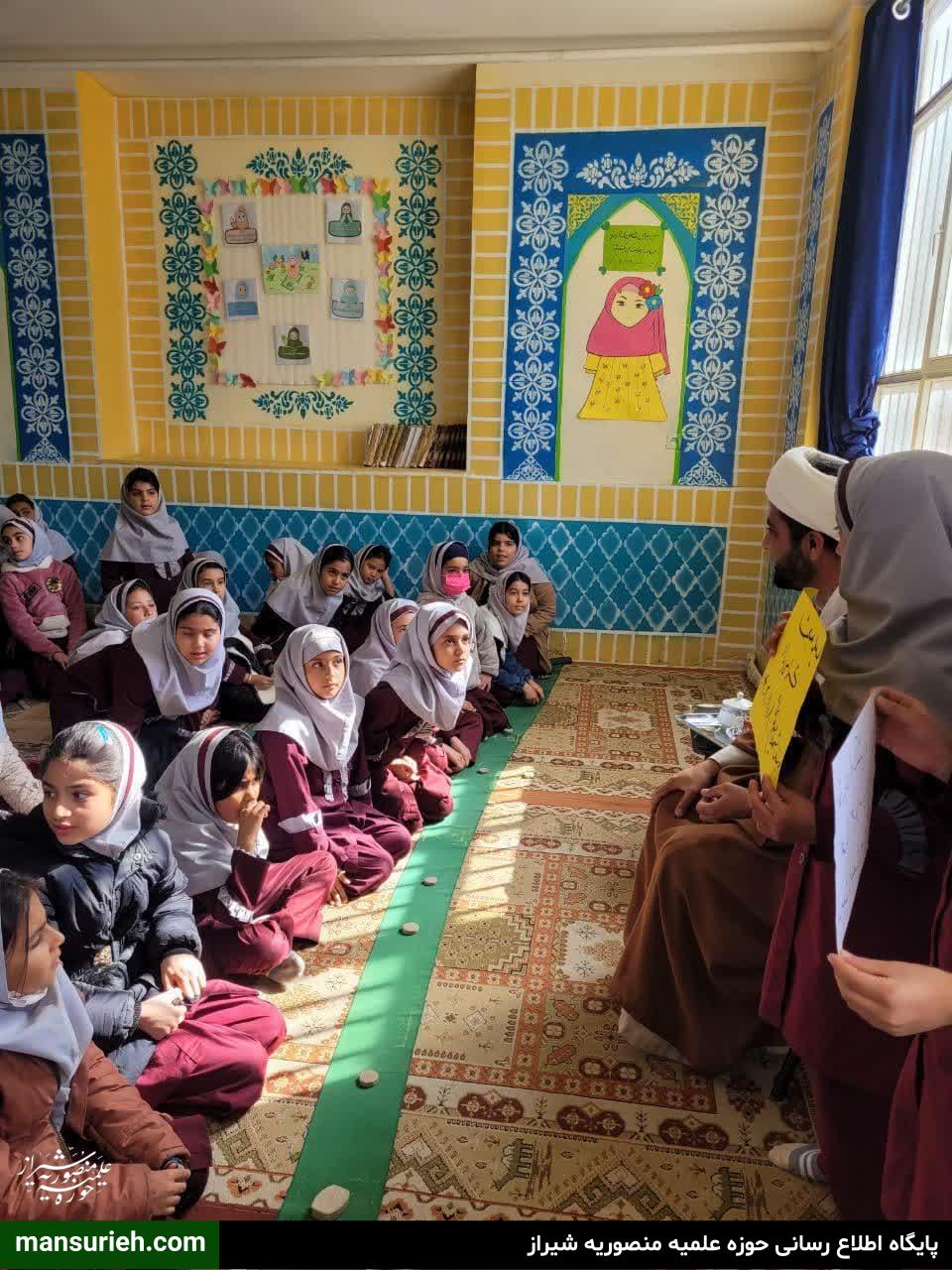 گزارش تصویری یک / اعزام مبلغین قرارگاه عمار مدرسه علمیه منصوریه به مدارس دبستان دخترانه آموزش و پرورش ناحیه سه شیراز جهت بیان احکام قبل از جشن تکلیف