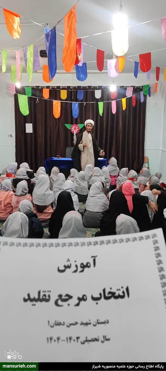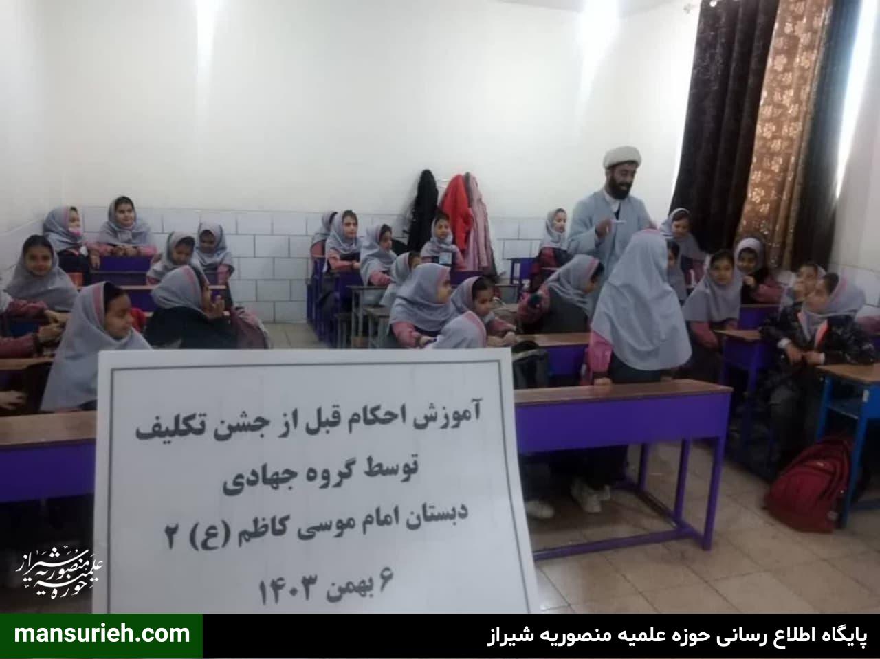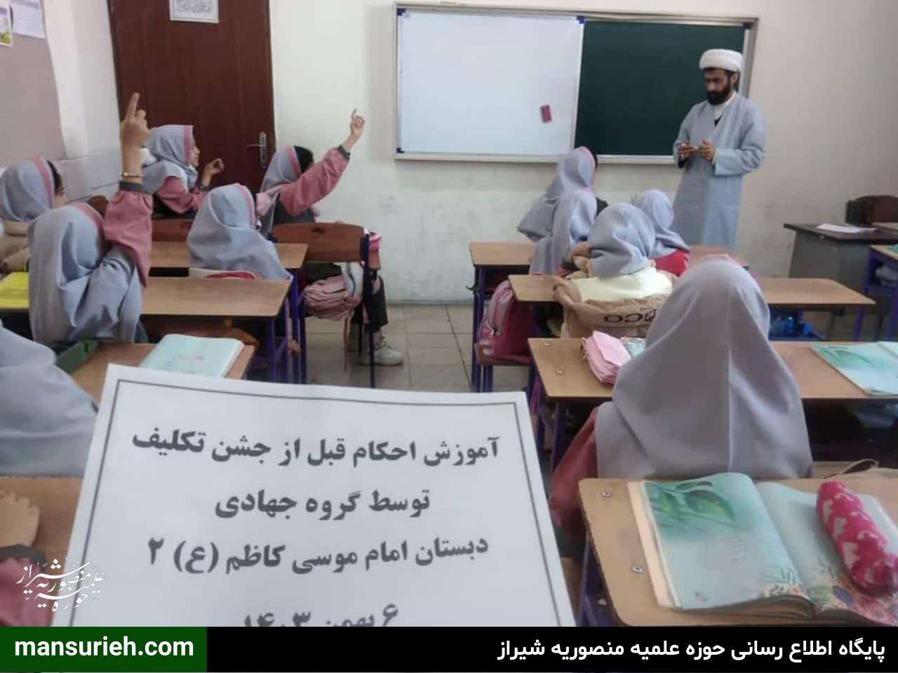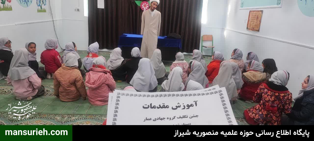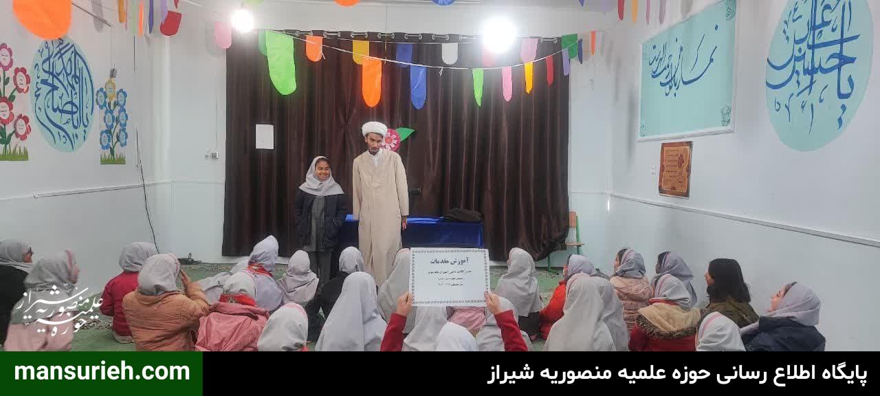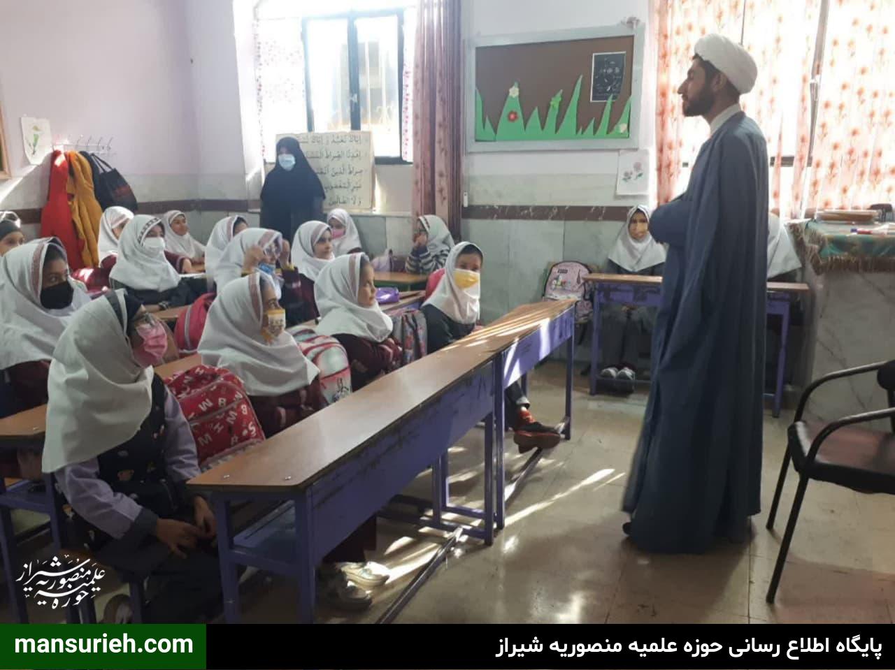 گزارش تصویری یک / اعزام مبلغین قرارگاه عمار مدرسه علمیه منصوریه به مدارس دبستان دخترانه آموزش و پرورش ناحیه سه شیراز جهت بیان احکام قبل از جشن تکلیف