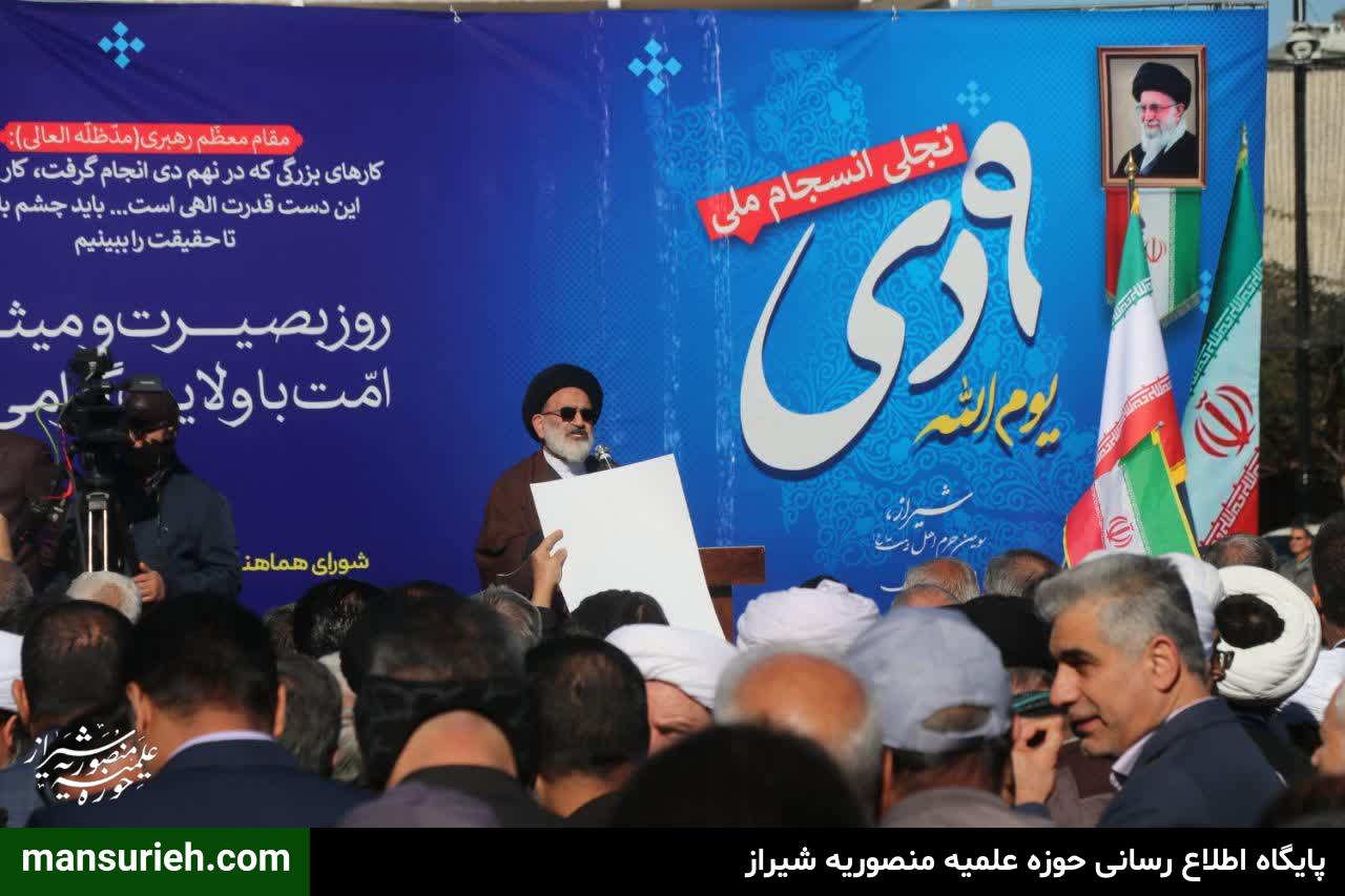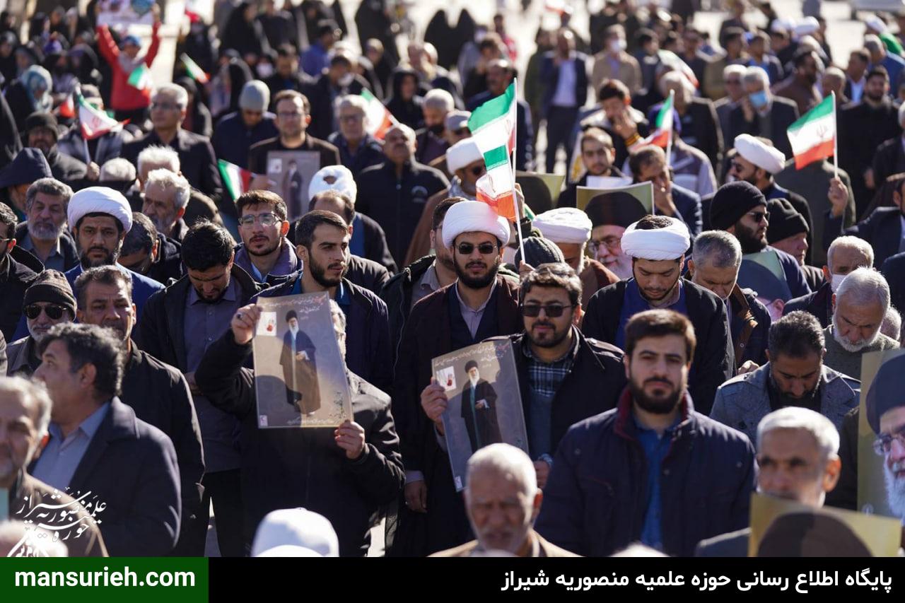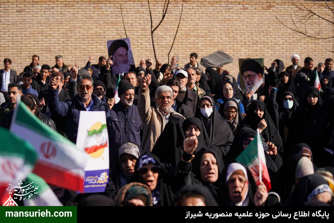 حضور طلاب و روحانیون مدرسه علمیه منصوریه به همراه مردم ولایتمدار شیراز در مراسم حماسه 9 دی ماه گرامیداشت روز «بصیرت و میثاق امّت با ولایت»