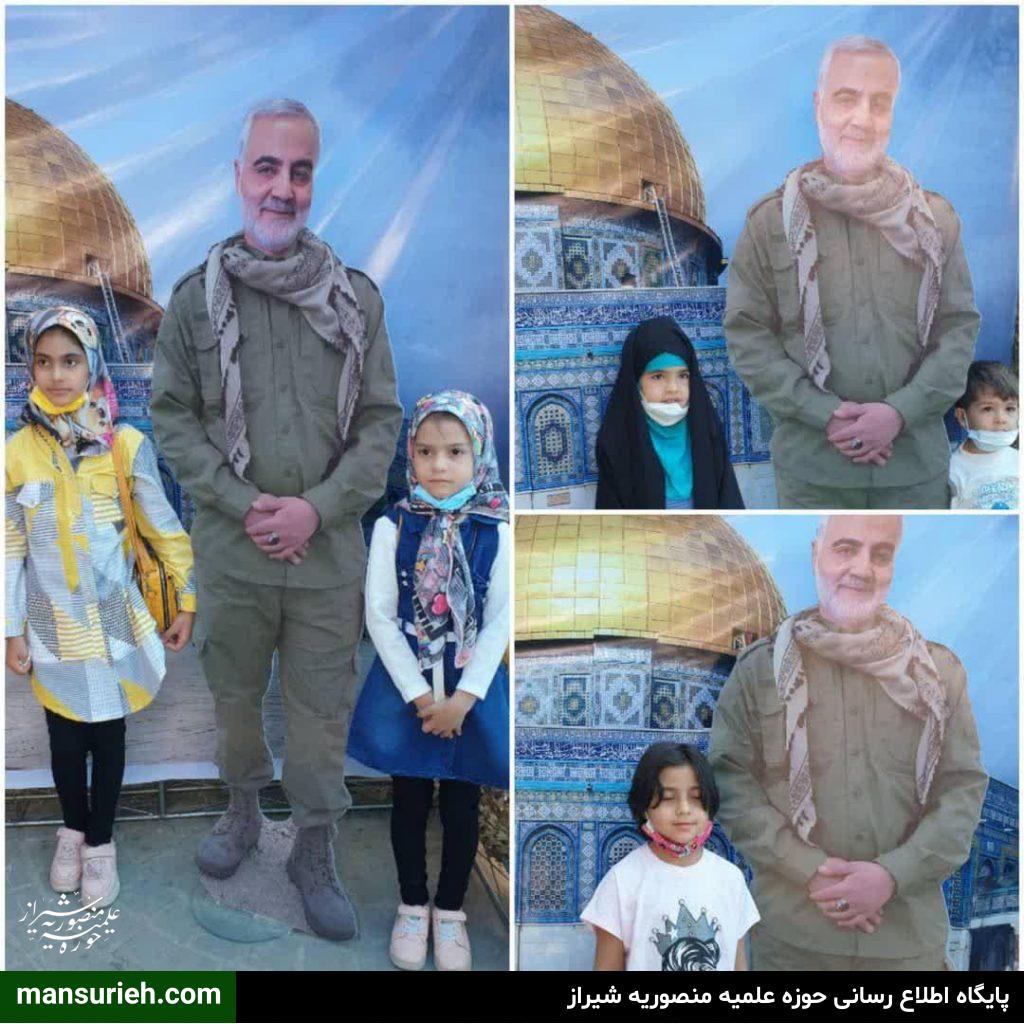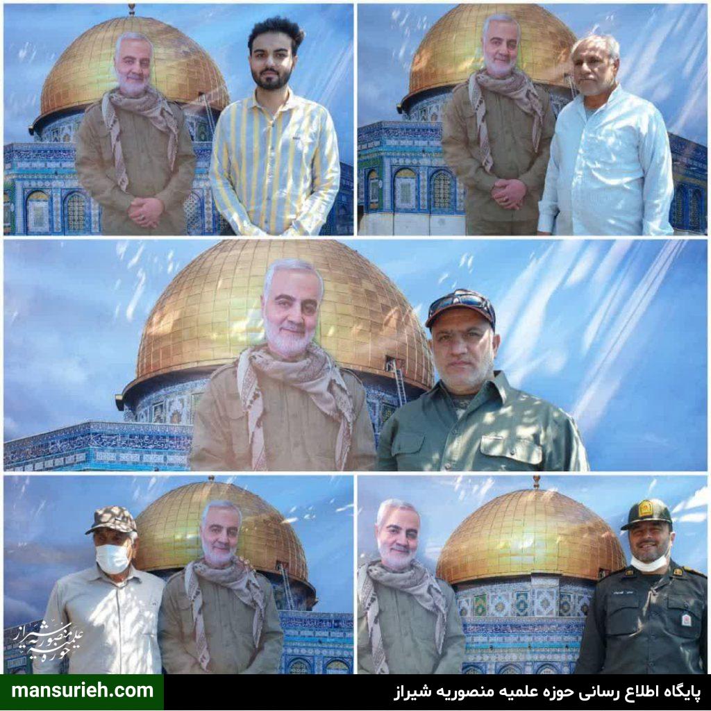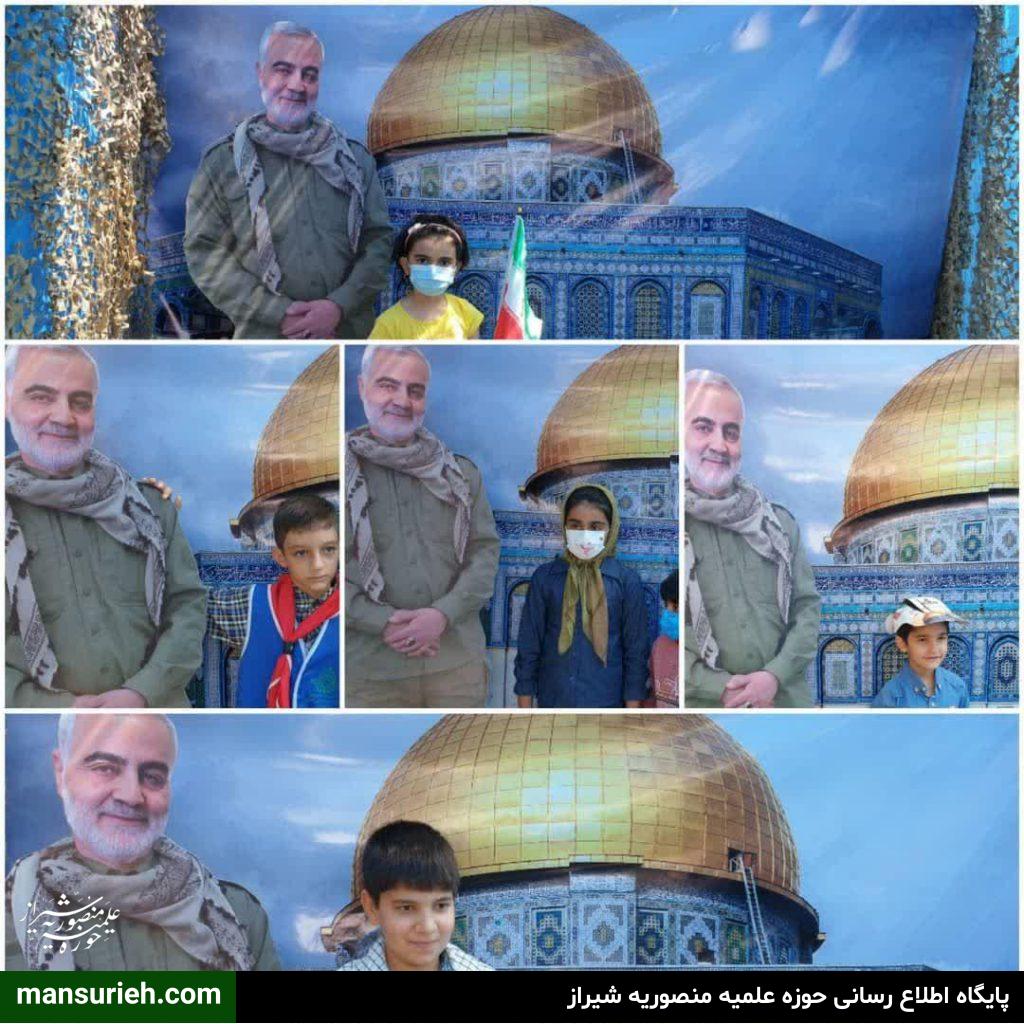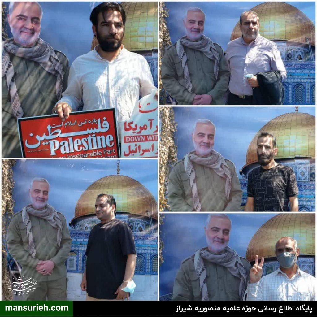 برپایی ایستگاه عکس یادگاری با سردار شهید حاج قاسم سلیمانی توسط کانون فرهنگی مسجدالنبی شیراز تحت پوشش قرارگاه عمار در در راهپیمایی روز جهانی قدس