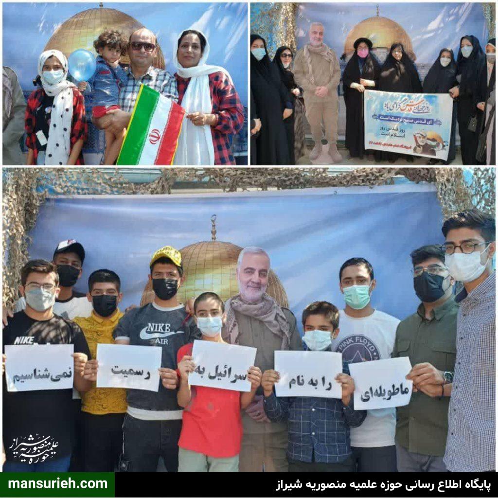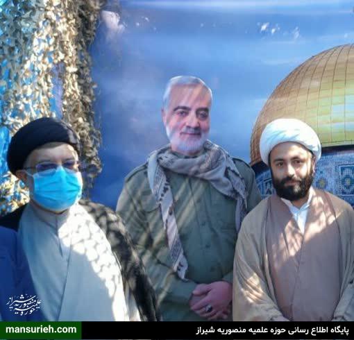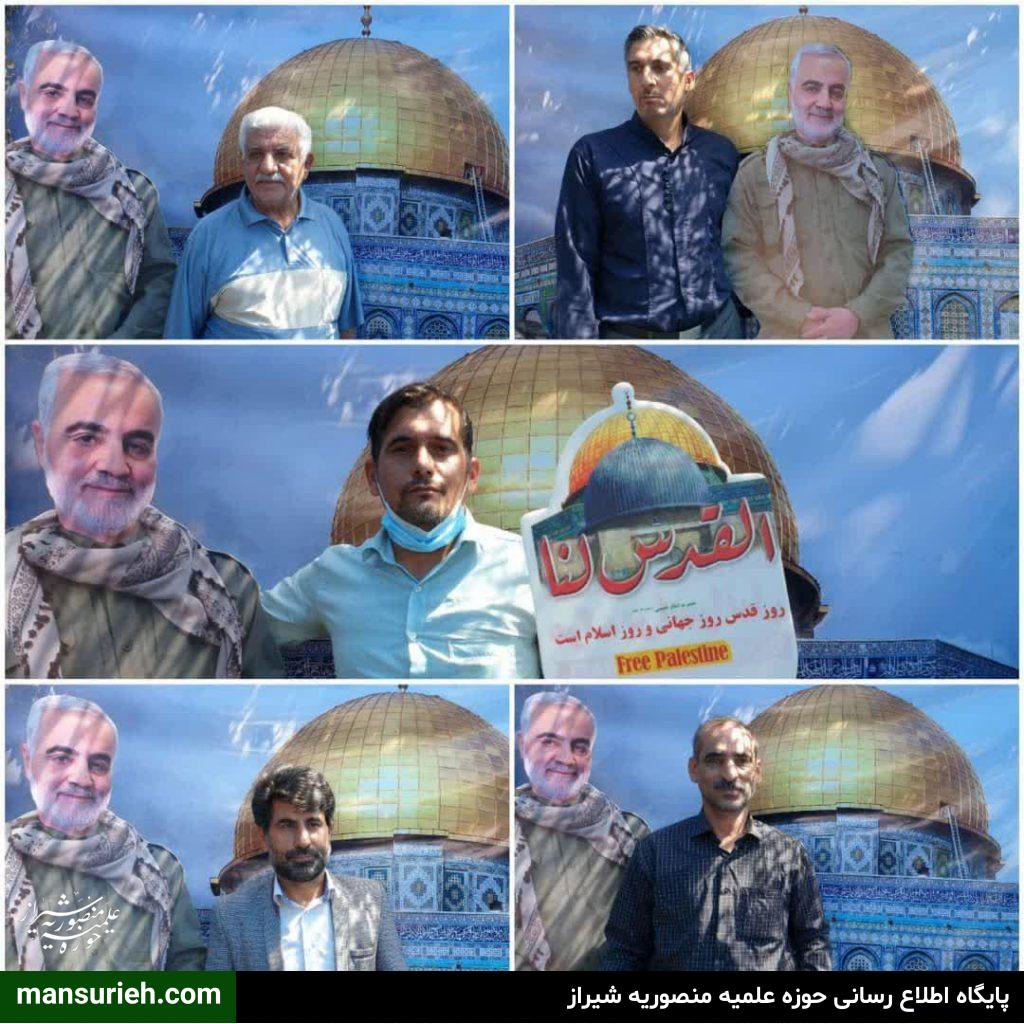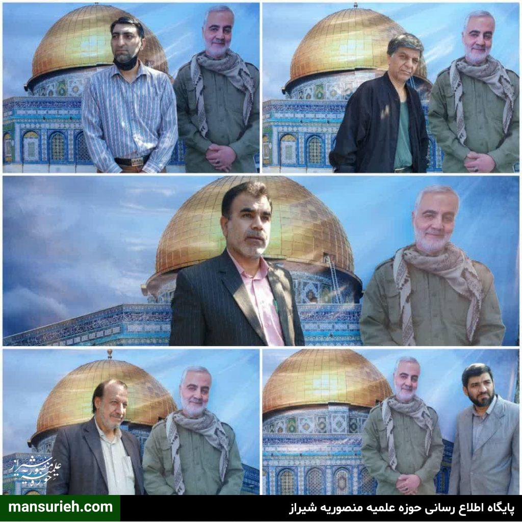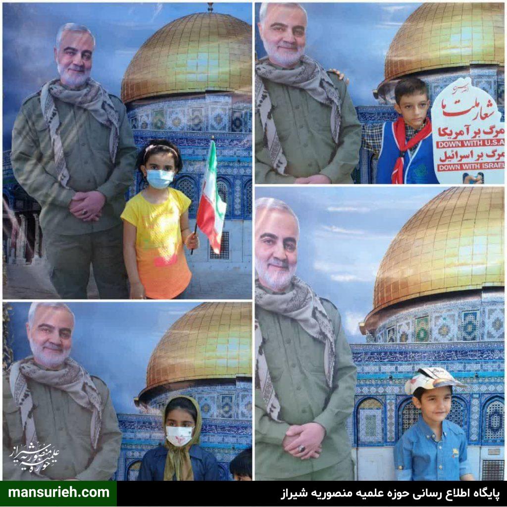 برپایی ایستگاه عکس یادگاری با سردار شهید حاج قاسم سلیمانی توسط کانون فرهنگی مسجدالنبی شیراز تحت پوشش قرارگاه عمار در در راهپیمایی روز جهانی قدس