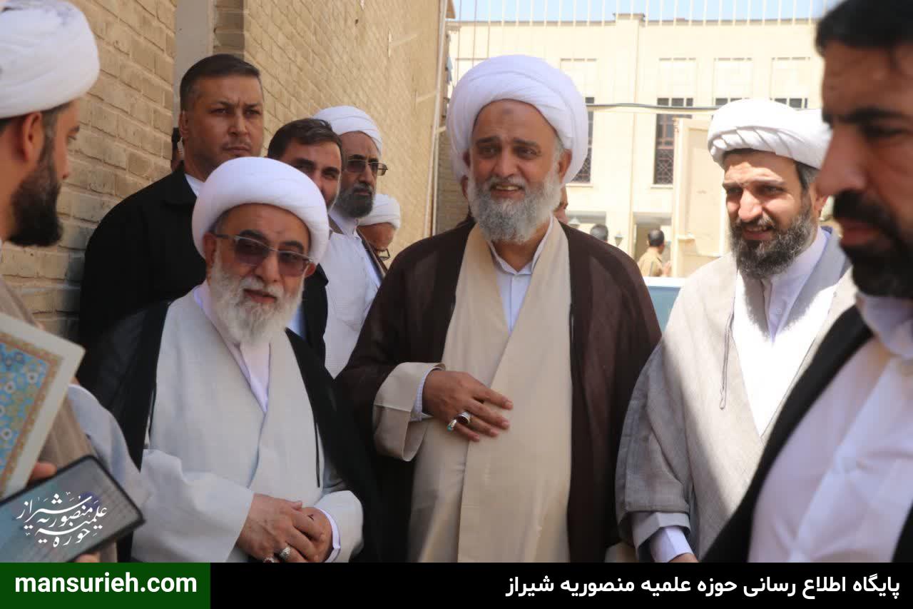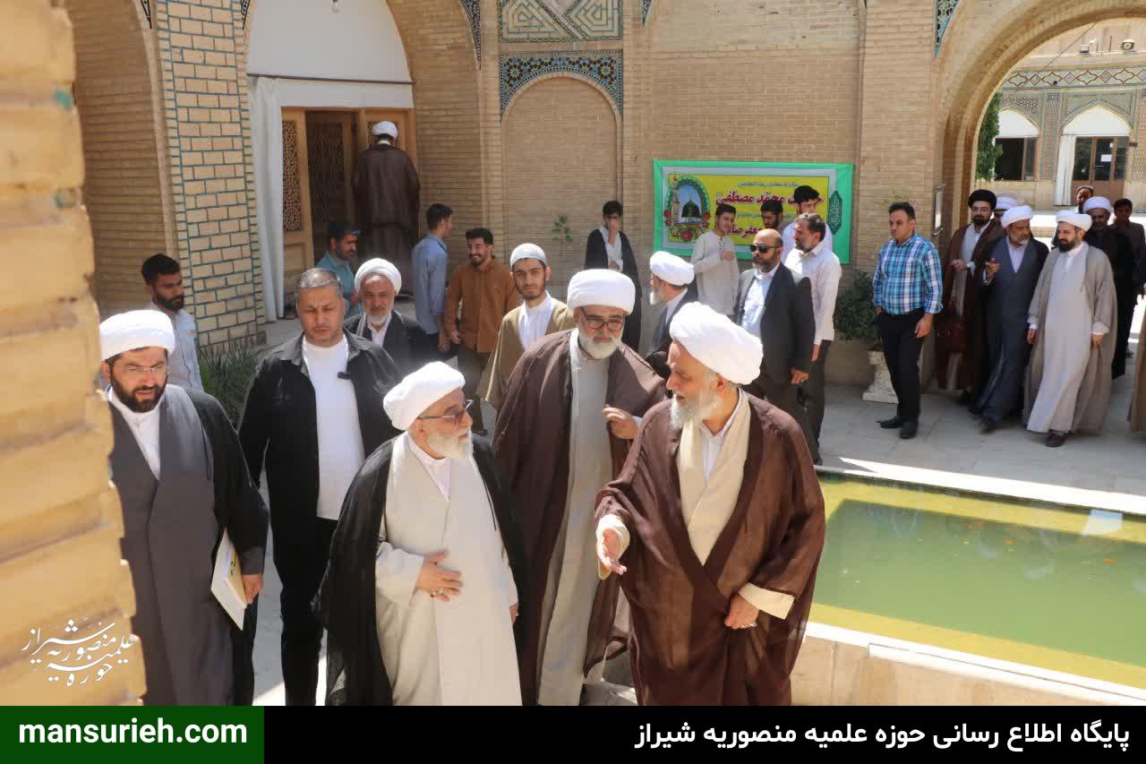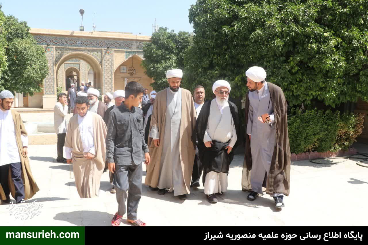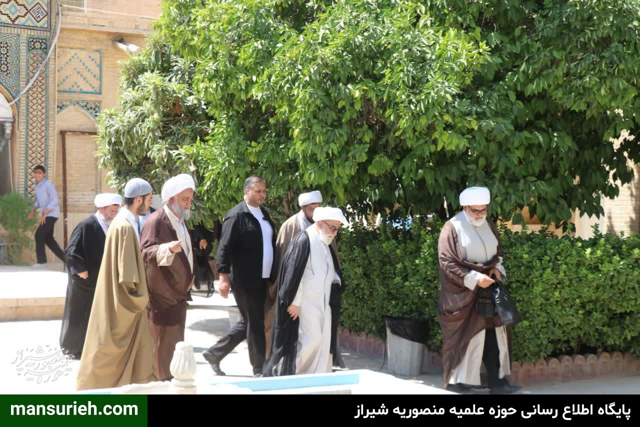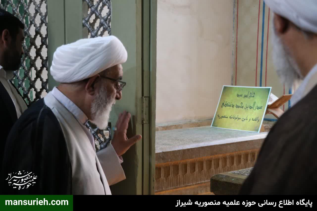 در پایان مراسم، معظمله در جوار تربت و مضجع شریف بانیان مدرسه علمیه منصوریه، مرحوم سید شهید سید سند صدرالدین محمد دشتکی و امیر غیاثالدین منصور، فاتحهای نثار کردند.